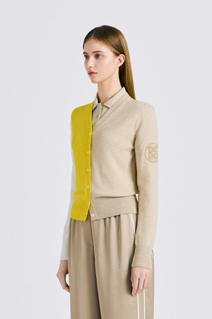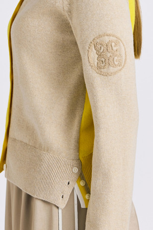 - 지포어 시그니처 컬러 배색이 돋보이는 V넥 디자인으로 스타일링에 포인트를 더해주는 아이템