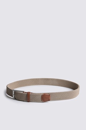 - 신축성이 뛰어난 엘라스틱 웨빙 소재를 사용한 남성용 벨트입니다.