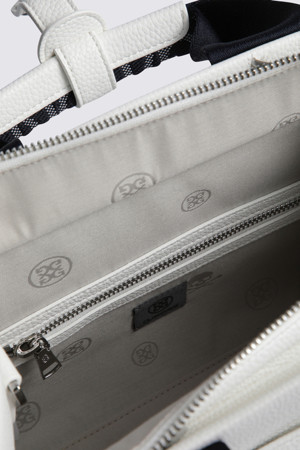 - 고급스러운 화이트 컬러에 네이비 웨빙 핸들로 포인트를 준 제품