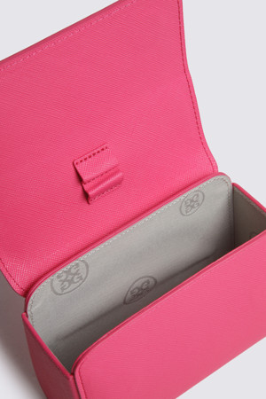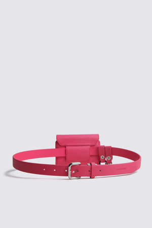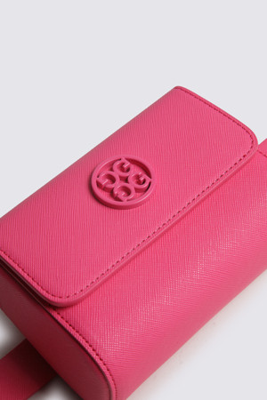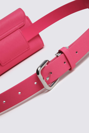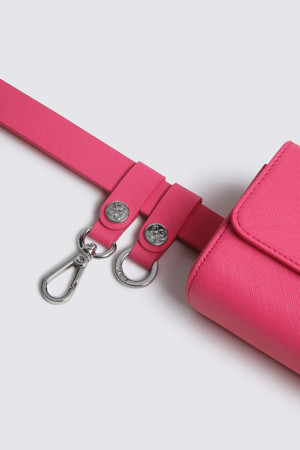 - 은은한 광택감이 느껴지는 고급스러운 소재로 제작된 여성용 벨트 파우치 제품