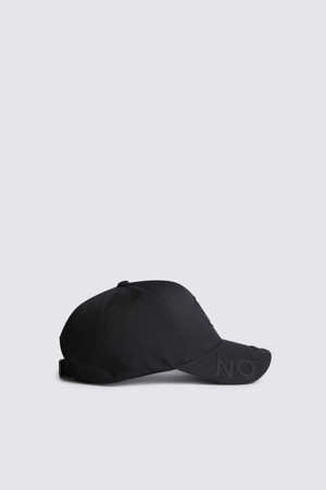 챙에 있는 고주파 슬로건 디테일로 브랜드 아이덴티티를 강조