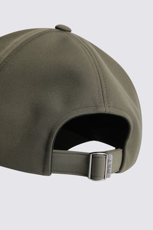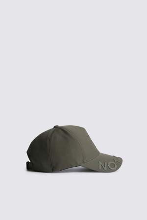 챙에 있는 고주파 슬로건 디테일로 브랜드 아이덴티티를 강조