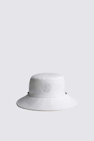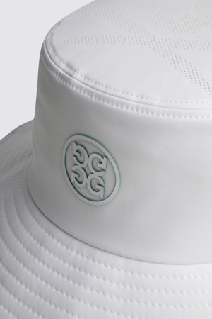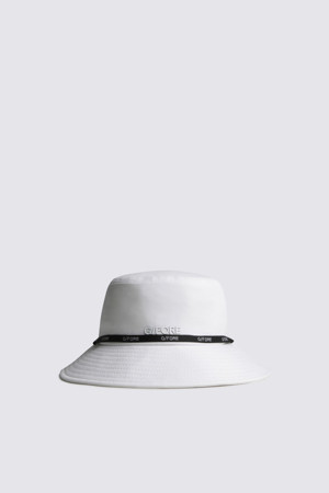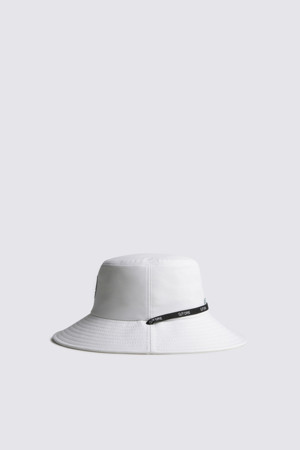- 상단에 스컬 로고 모티프의 타공 디테일을 적용해 통기성과 디자인을 동시에 강화한 남성용 버킷햇.