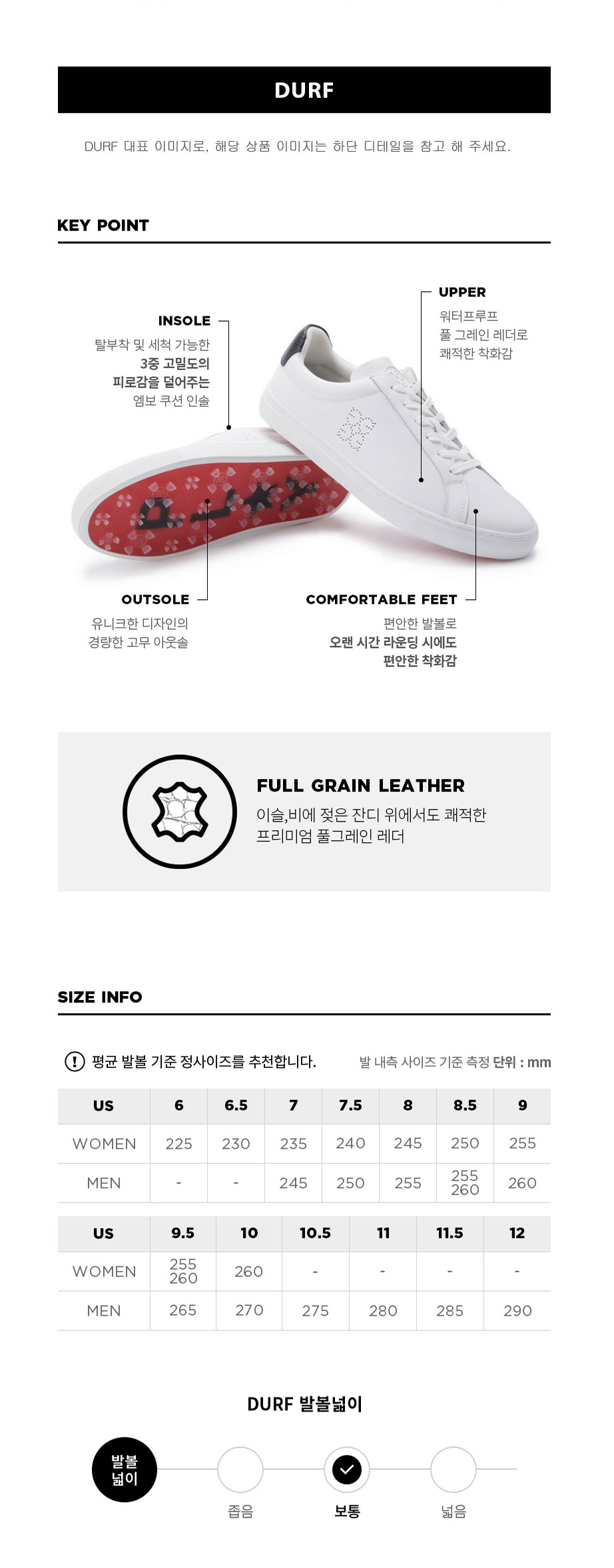 | 소재 | 갑피소재: 천연가죽 창소재: 합성고무 |