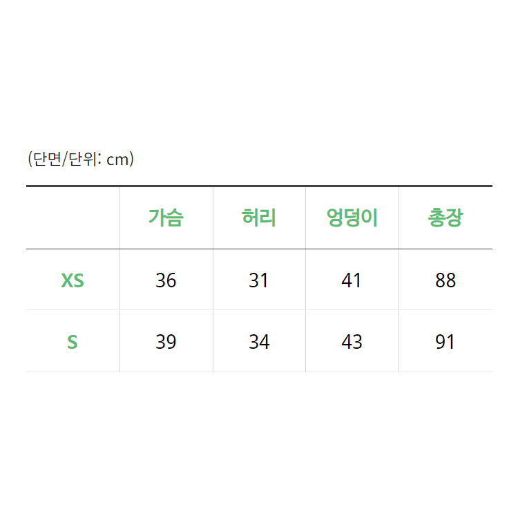 | 소재 | [원피스] 겉감: 비스코스 70% 나일론 30% (심지,보강재,상표,무늬,레이스,밴드 등 제외) [속바지] 겉감: 폴리에스터 92% 폴리우레탄 8% (심지,보강재,상표,무늬,레이스,밴드 등 제외) |