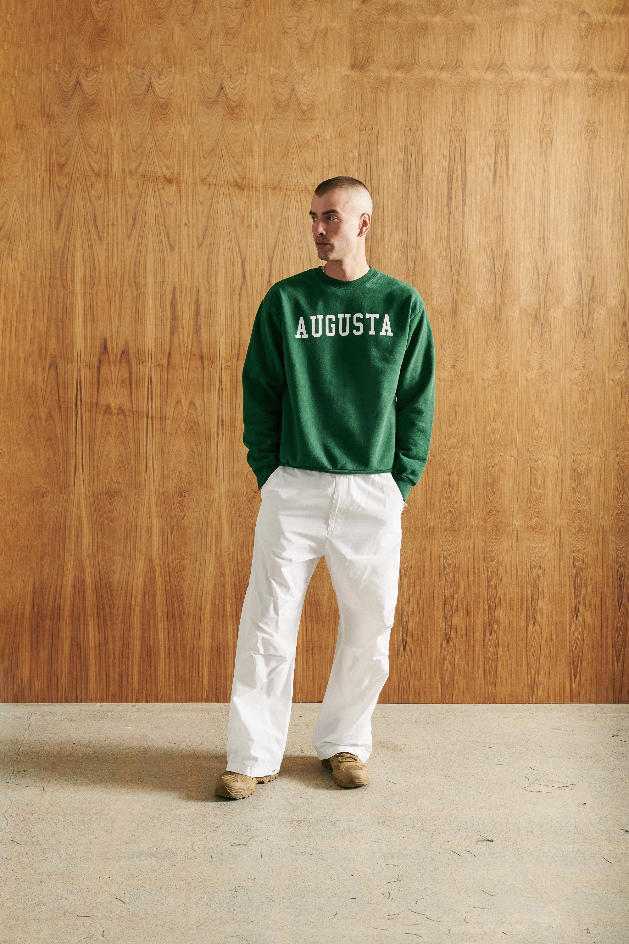박시한 핏으로 대비되는 컬러의 AUGUSTA 레터링이 포인트인 티셔츠입니다.