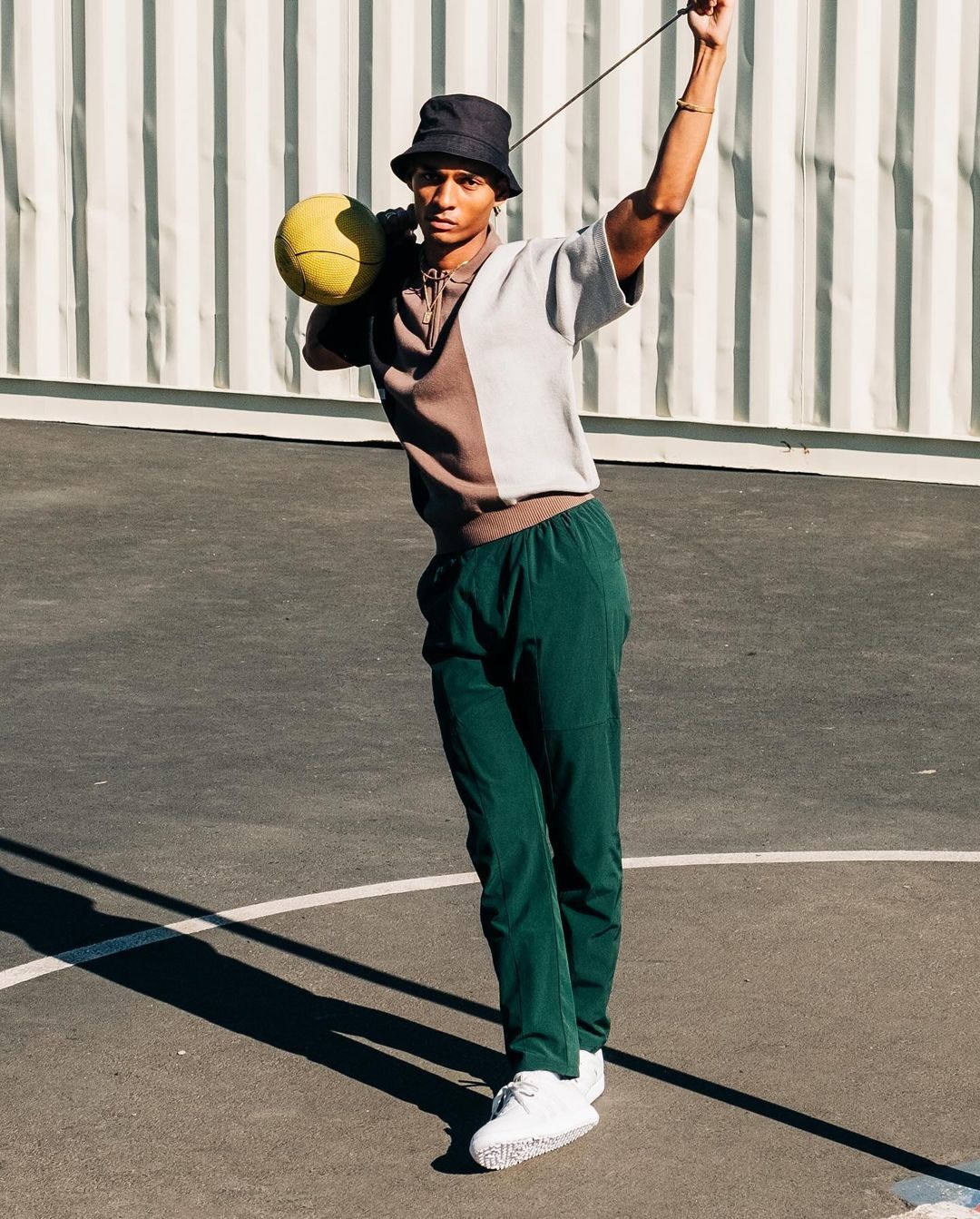 자카드 컬러 스트라이프가 돋보이는 부드러운 풀 패션