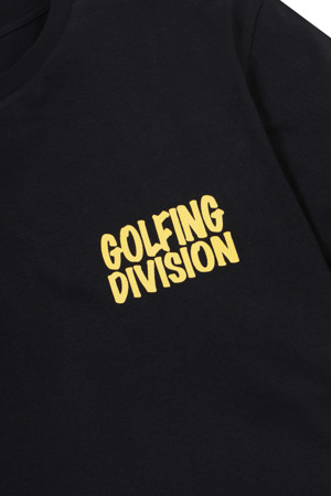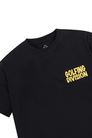 심플한 블랙 컬러에 Golfing Division 프린트를 더한 오가닉 코튼 티셔츠.