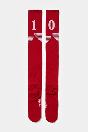 고강도 폴리아미드 소재로 제작된 니하이 축구 양말로,