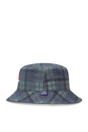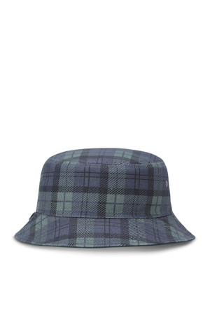 블루 & 그린 체크 패턴과 심플한 단색 컬러를 자유롭게 즐길 수 있는 리버서블 버킷햇