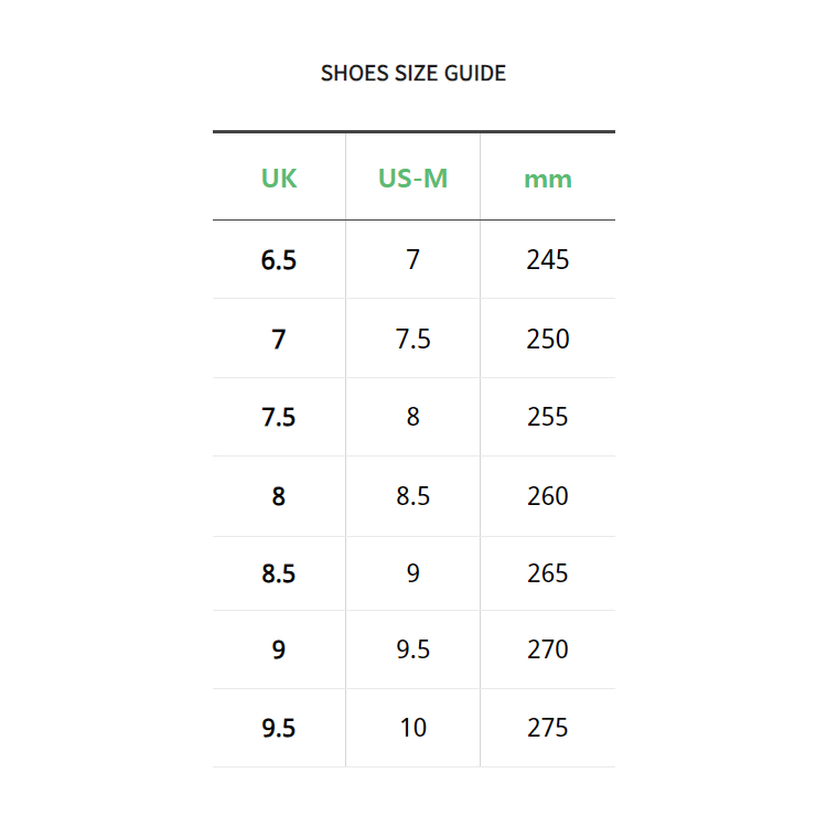 | 소재 | 겉감 : 100% 폴리에스터, 안감 : 100% 폴리에스터, 창 : 특수 배합합성고무 |