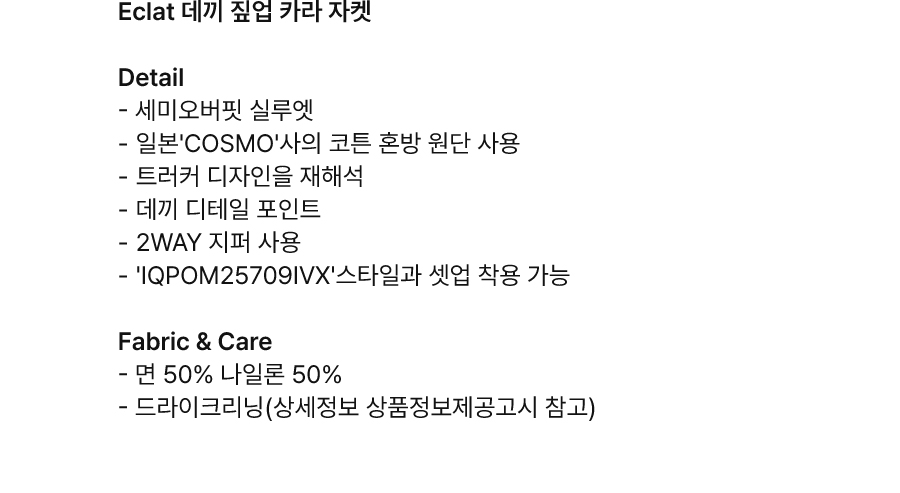 | 세탁방법 및 취급시 주의사항 | 상품상세설명참조 |