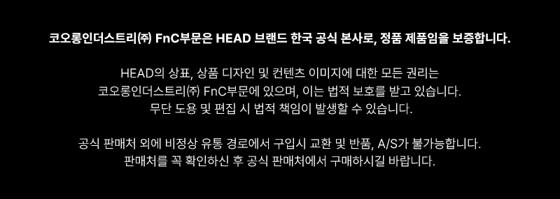 | 품질보증기준 | 코오롱 인더스트리㈜FnC부문 제품의 품질보증기간은 구입일로부터 1년, 입점사 제품의 경우, 업체마다 다를 수 있음 그 외 기준은 관련법 및 소비자분쟁해결 규정에 따름 |