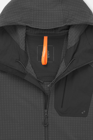 미드레이어와 아우터레이어의 결합으로 착용 가능한 전문가형 소프트쉘 플리스 재킷입니다.