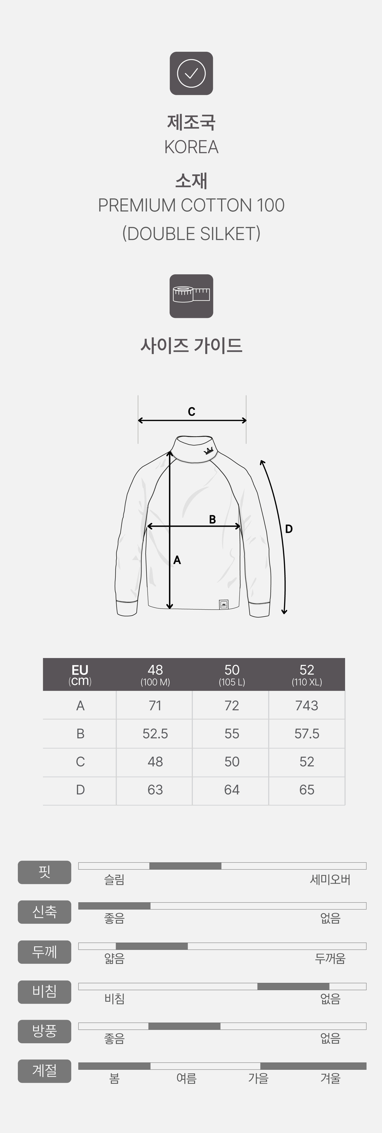 | 소재 | PREMIUM COTTON 100% (DOUBLE SILKET) |