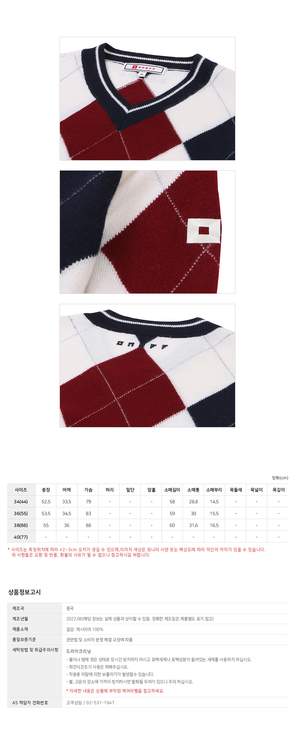 [온오프골프웨어] 여성 캐시미어 아가일 스웨터 OF2432LB