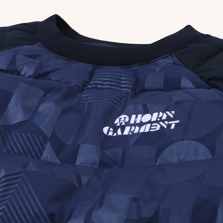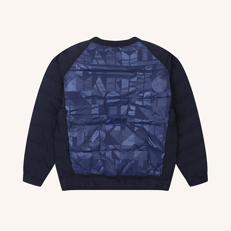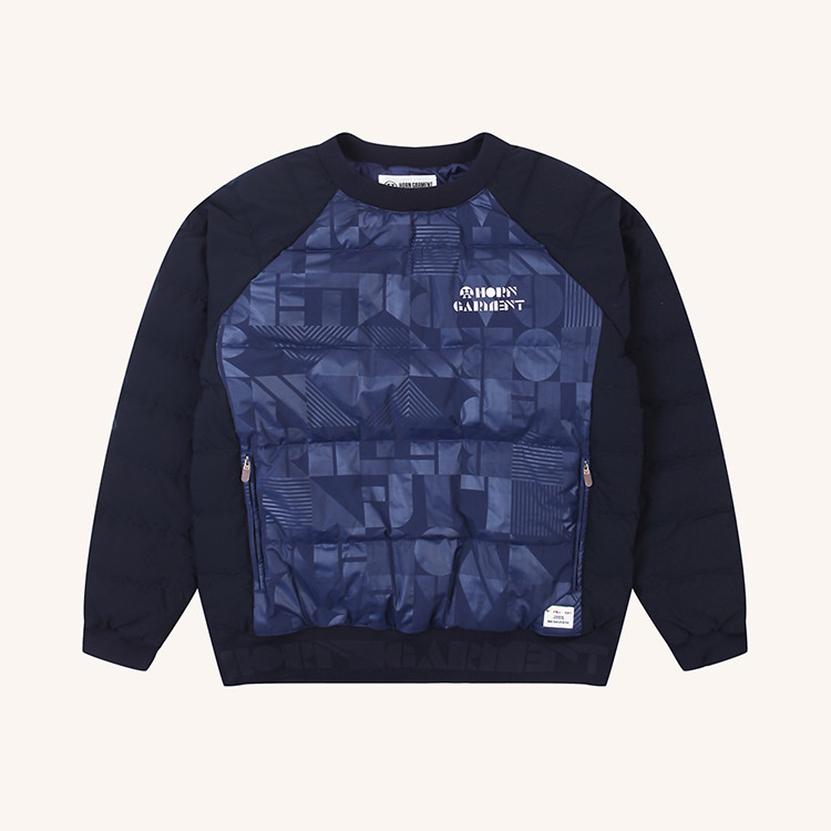 ・토널 배색의 블록 패턴이 돋보이는 다운 풀오버