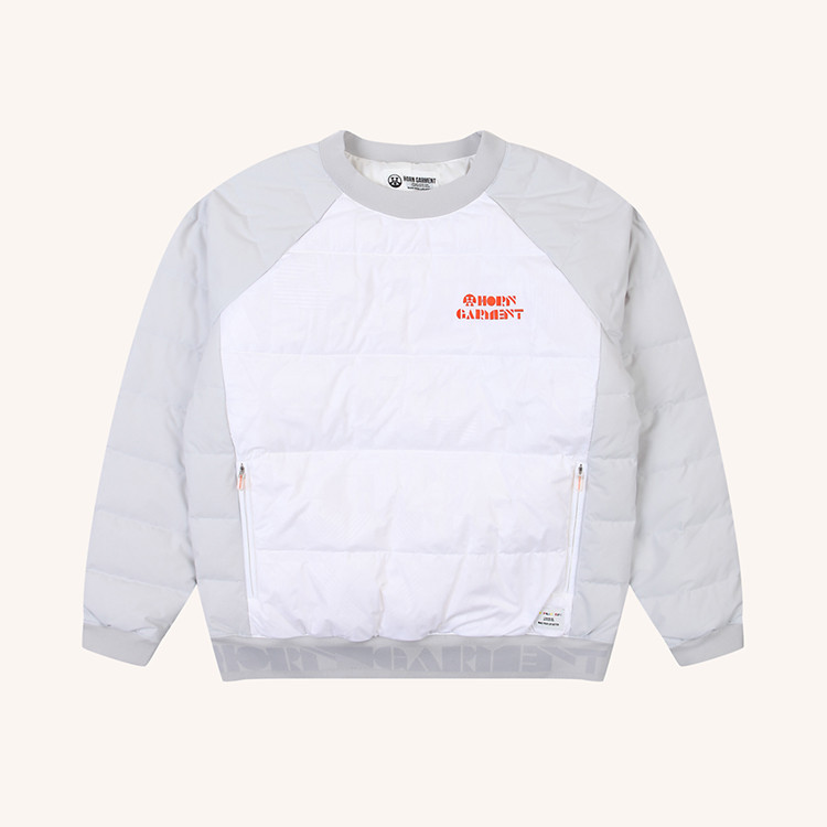 ・토널 배색의 블록 패턴이 돋보이는 다운 풀오버