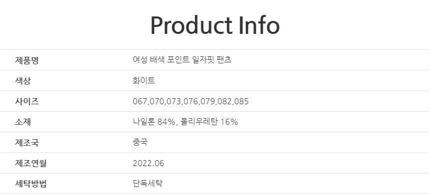 | 제조연월 | 202206 (해당 정보는 실제 상품과 상이할 수 있음. 정확한 제조일은 제품 별도 표기 참고) |