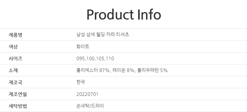 | 제조연월 | 202207 (해당 정보는 실제 상품과 상이할 수 있음. 정확한 제조일은 제품 별도 표기 참고) |