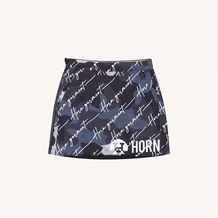 ・혼가먼트 개발 카모플라주 패턴과 필기체 로고 패턴의 MIX 패턴이 돋보이는 리버시블 다운 스커트