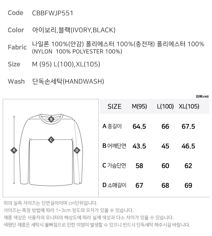 | 세탁방법 및 취급시 주의사항 | 상품상세설명참조 |