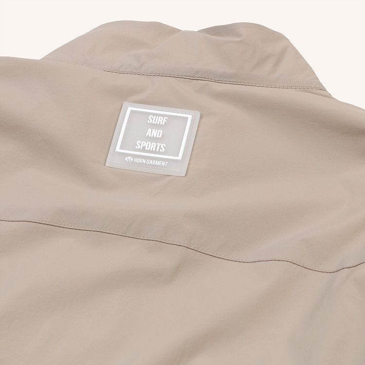 ・왼쪽 가슴과 후면 포켓 부분에 브랜드 로고와 뒷 옷깃에 SURF AND SPORTS 디자인의 클리어 실리콘 와펜이 오리지널리티를 더함