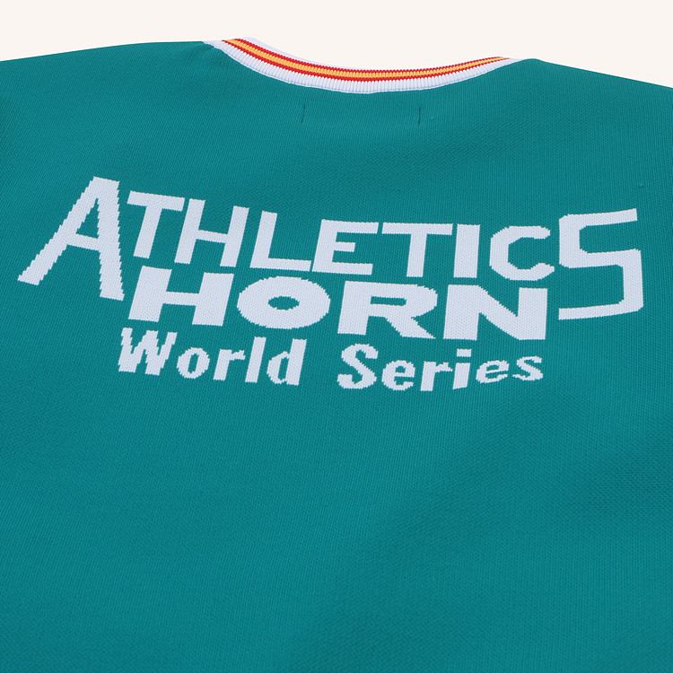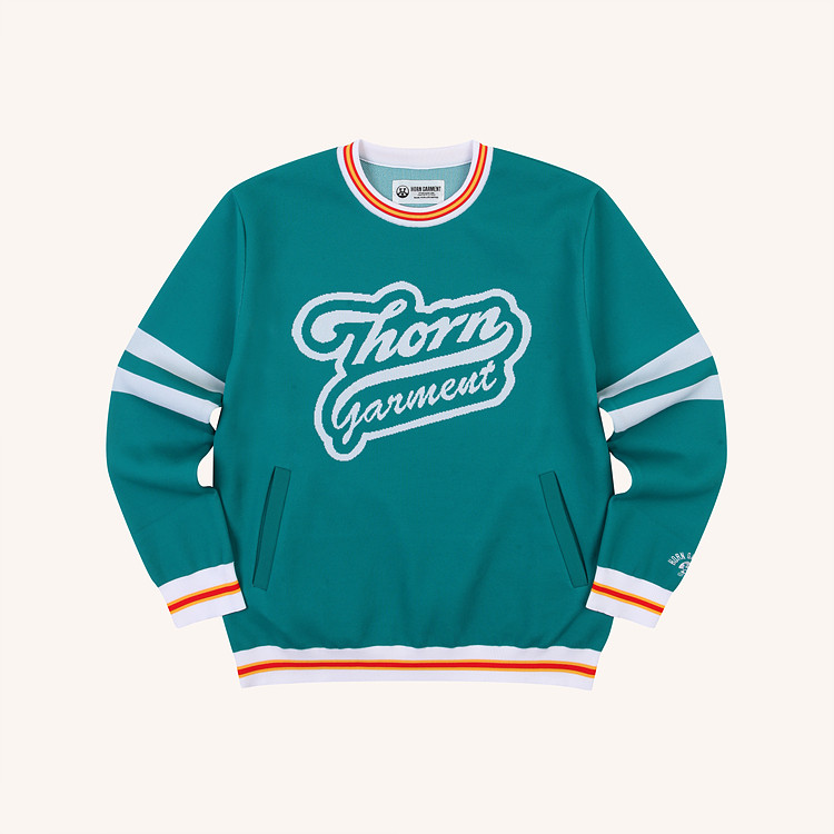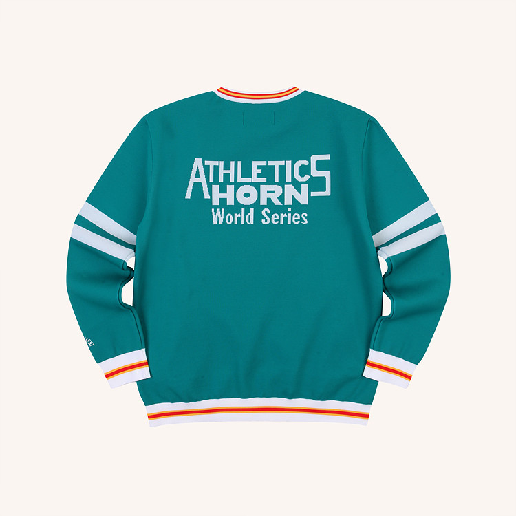 ・빈티지 무드의 베이스볼에서 영감을 받은 그래픽 디자인이 돋보이는 자카드 풀오버 니트