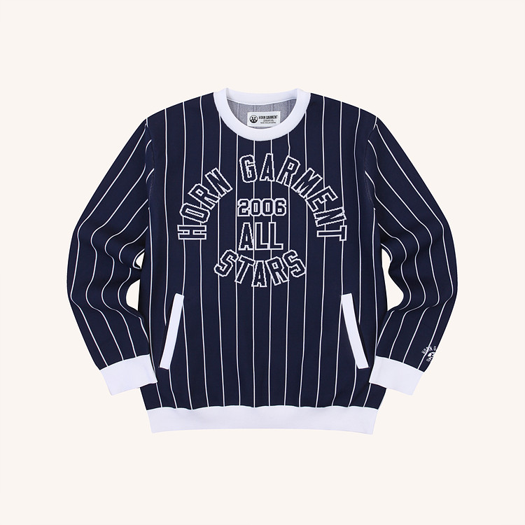 ・빈티지 무드의 베이스볼에서 영감을 받은 그래픽 디자인이 돋보이는 자카드 풀오버 니트