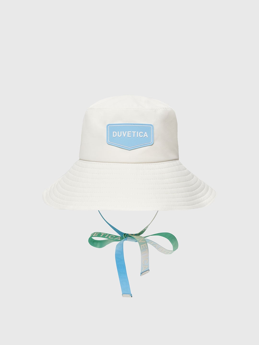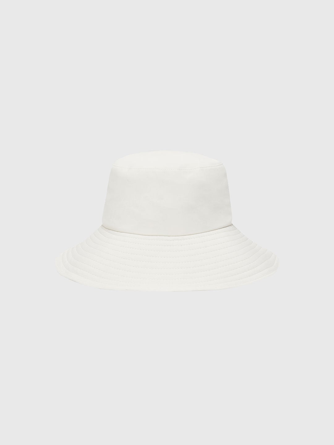시그니처 오각 와펜과 산뜻한 로고테이프 디테일이 눈에 띄는 버킷햇입니다.