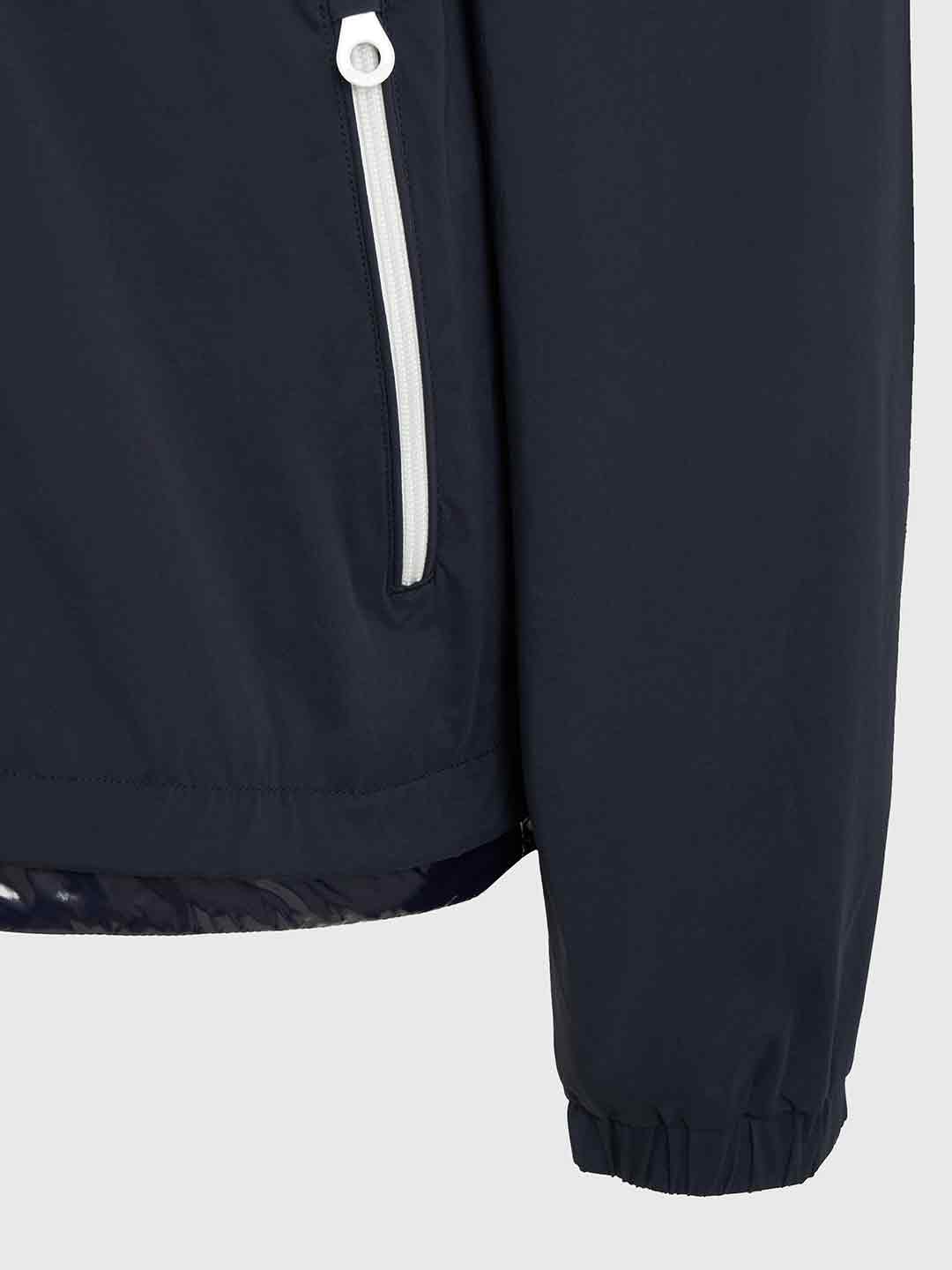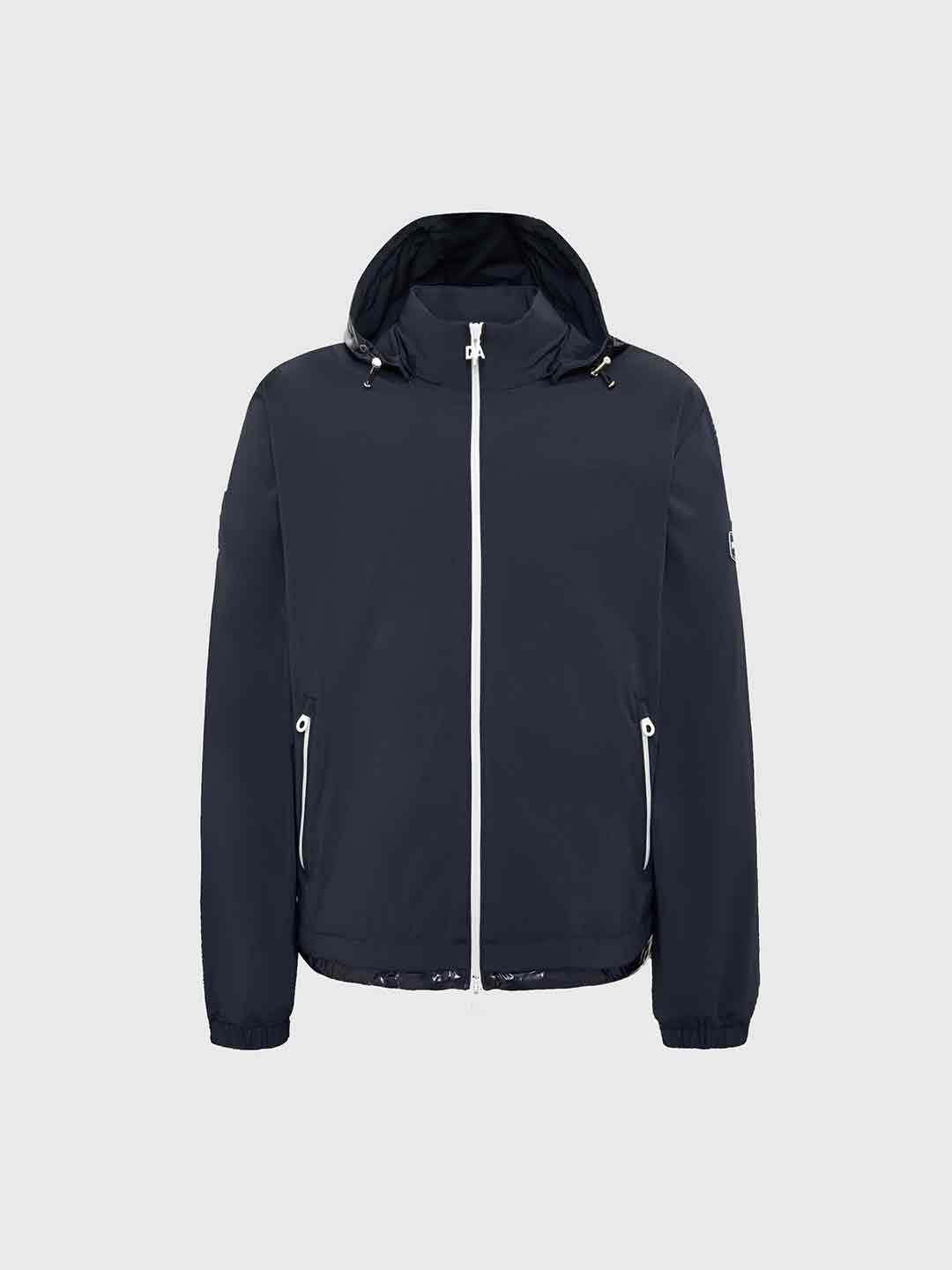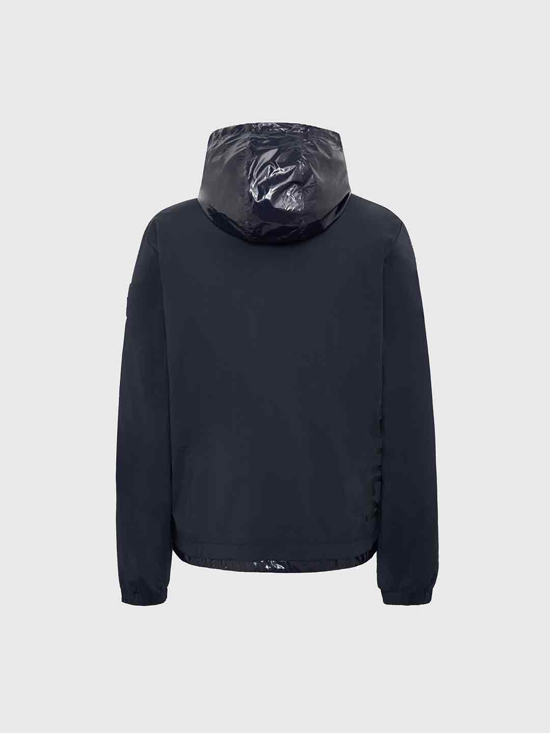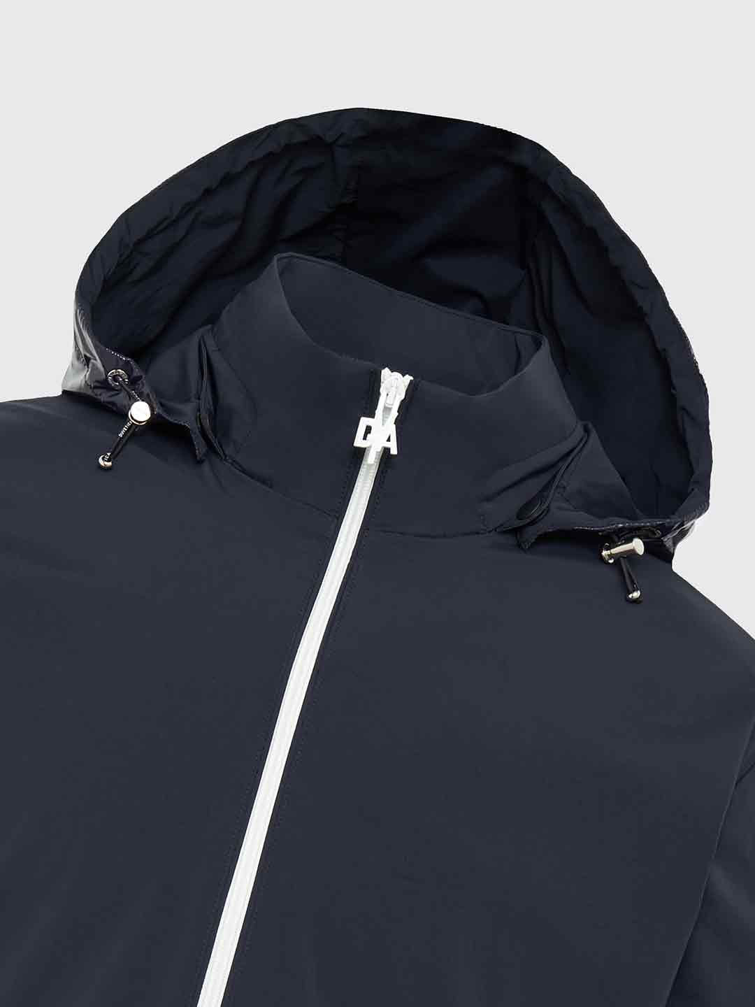 베이직하고 편안한 실루엣에 유광소재의 후드가 믹스 되어 프리미엄 레져 활동에 포인트를 줍니다.
