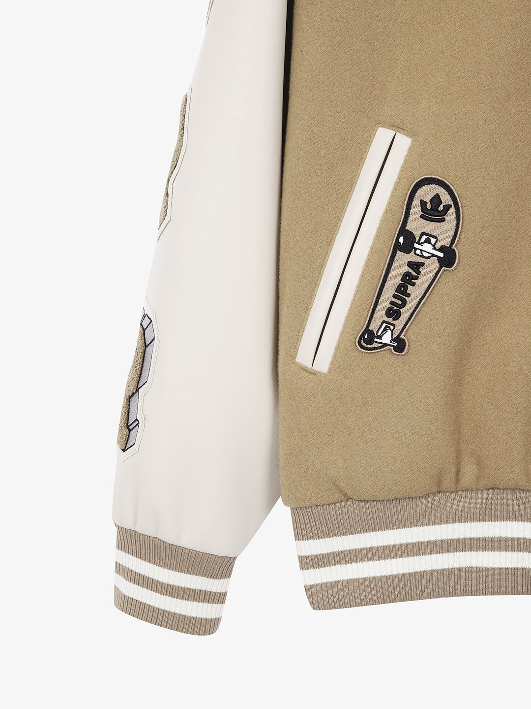 | 소재 | 겉감 모90% 겉감 나일론10% 배색 코팅 폴리우레탄 배색 지조직 레이온(비스코스)66% 배색 지조직 폴리에스터34% 안감 나일론100% 충전재 폴리에스터100% 부속 폴리에스터96% 부속 폴리우레탄4% |