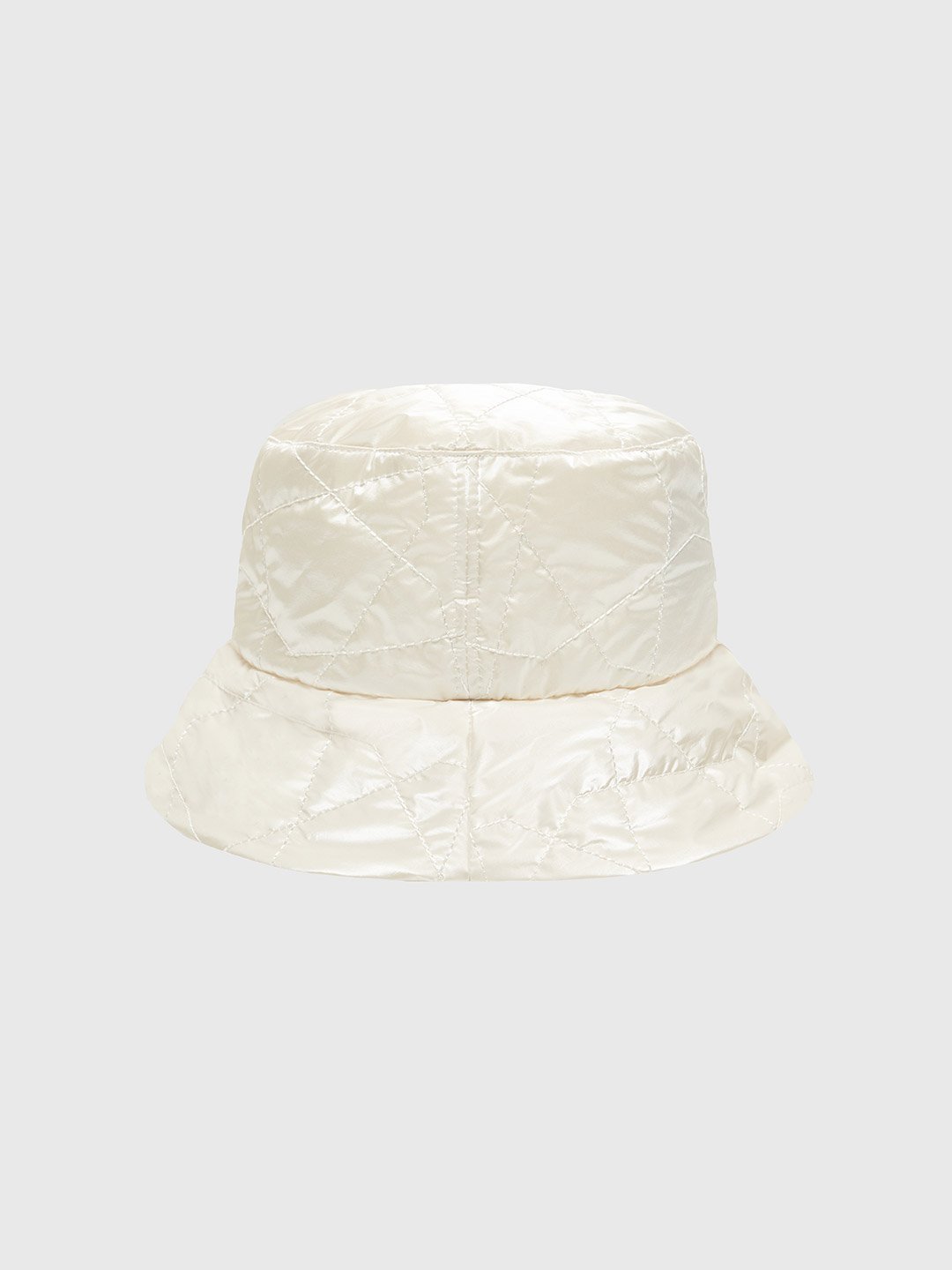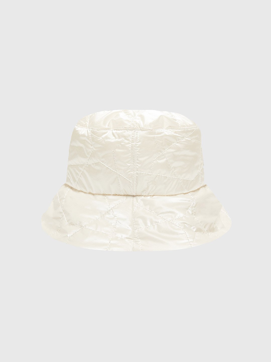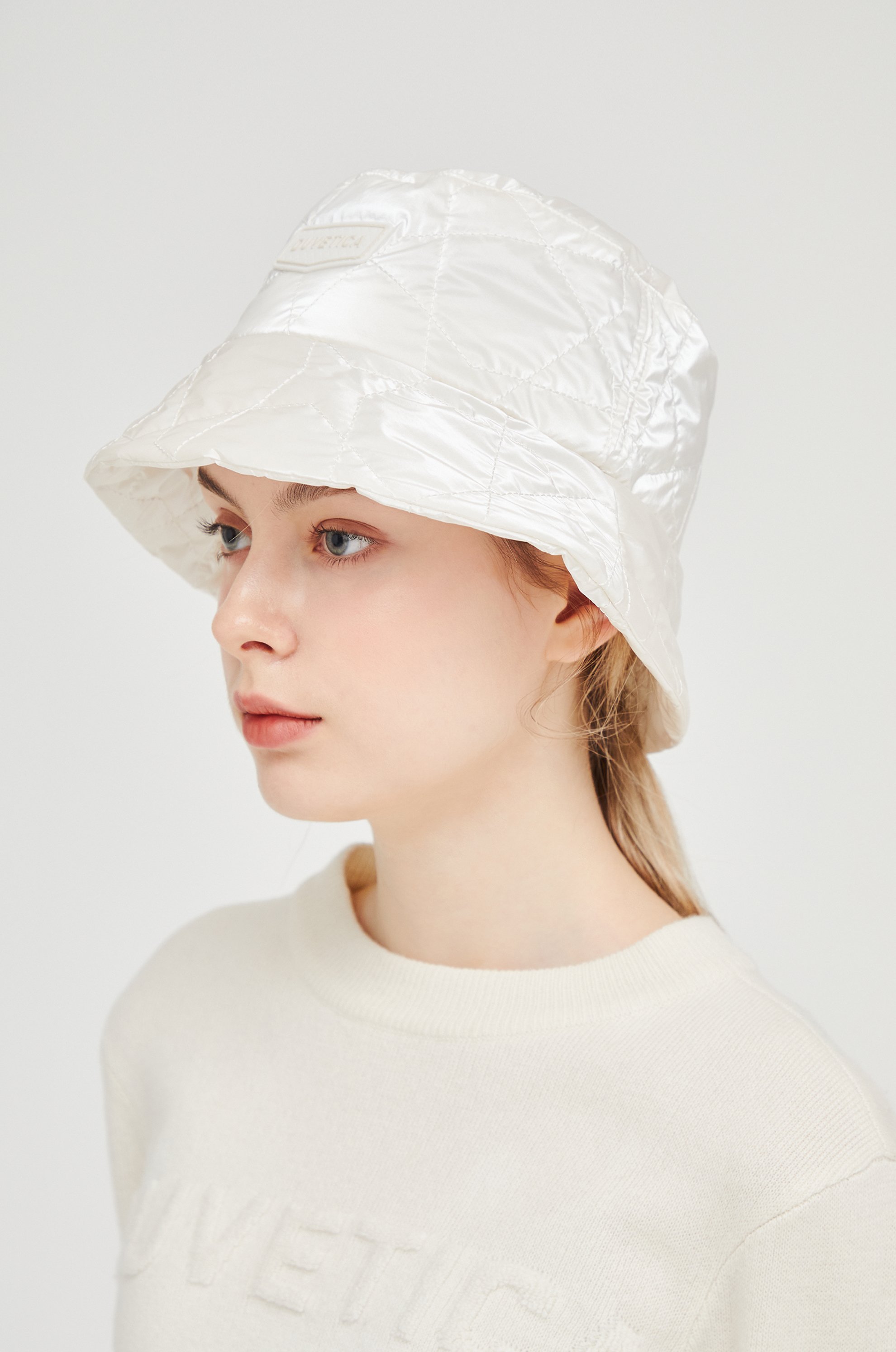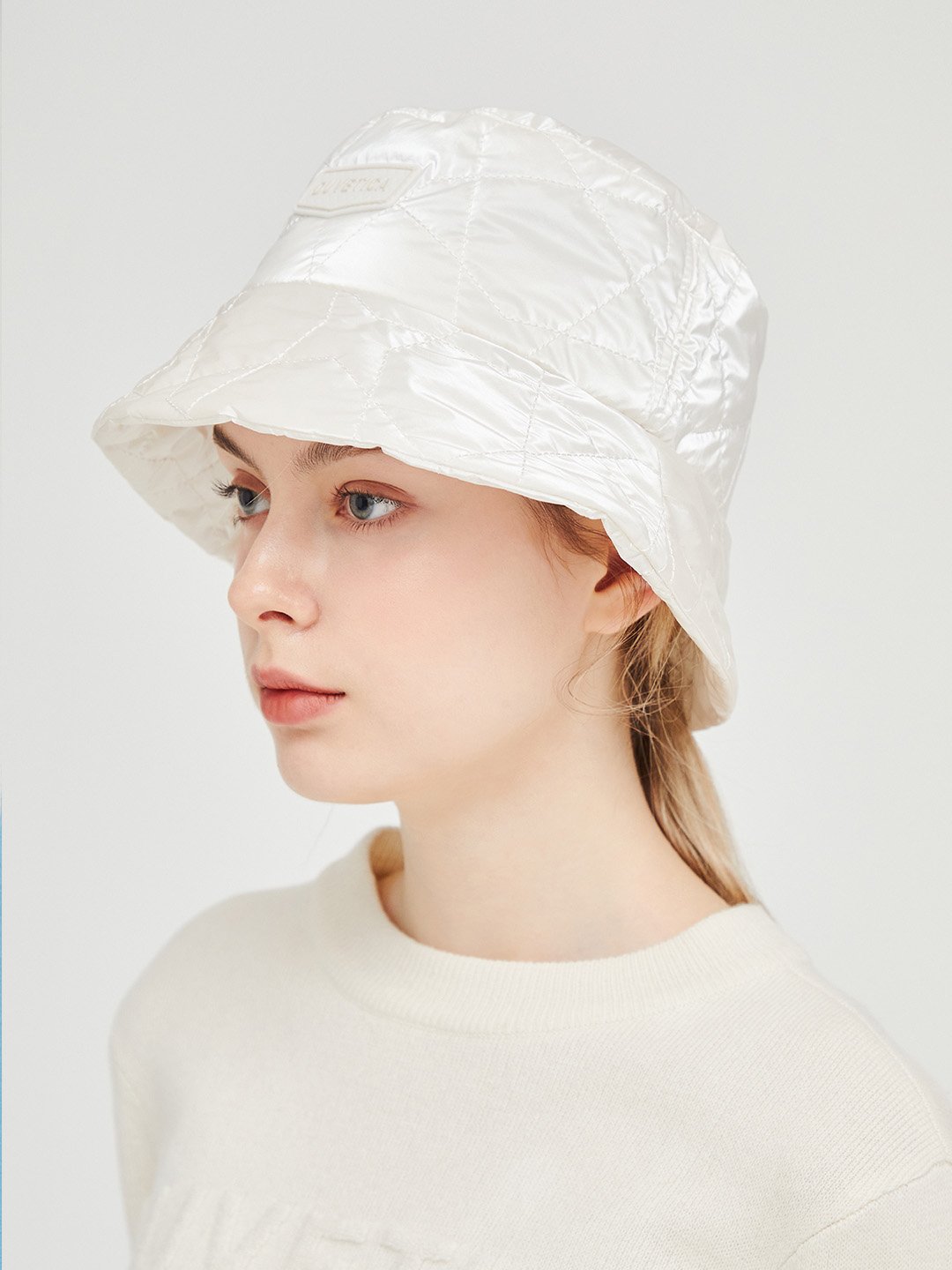 - 글로시한 질감의 패딩 소재가 사용된 시그니처 버킷 햇