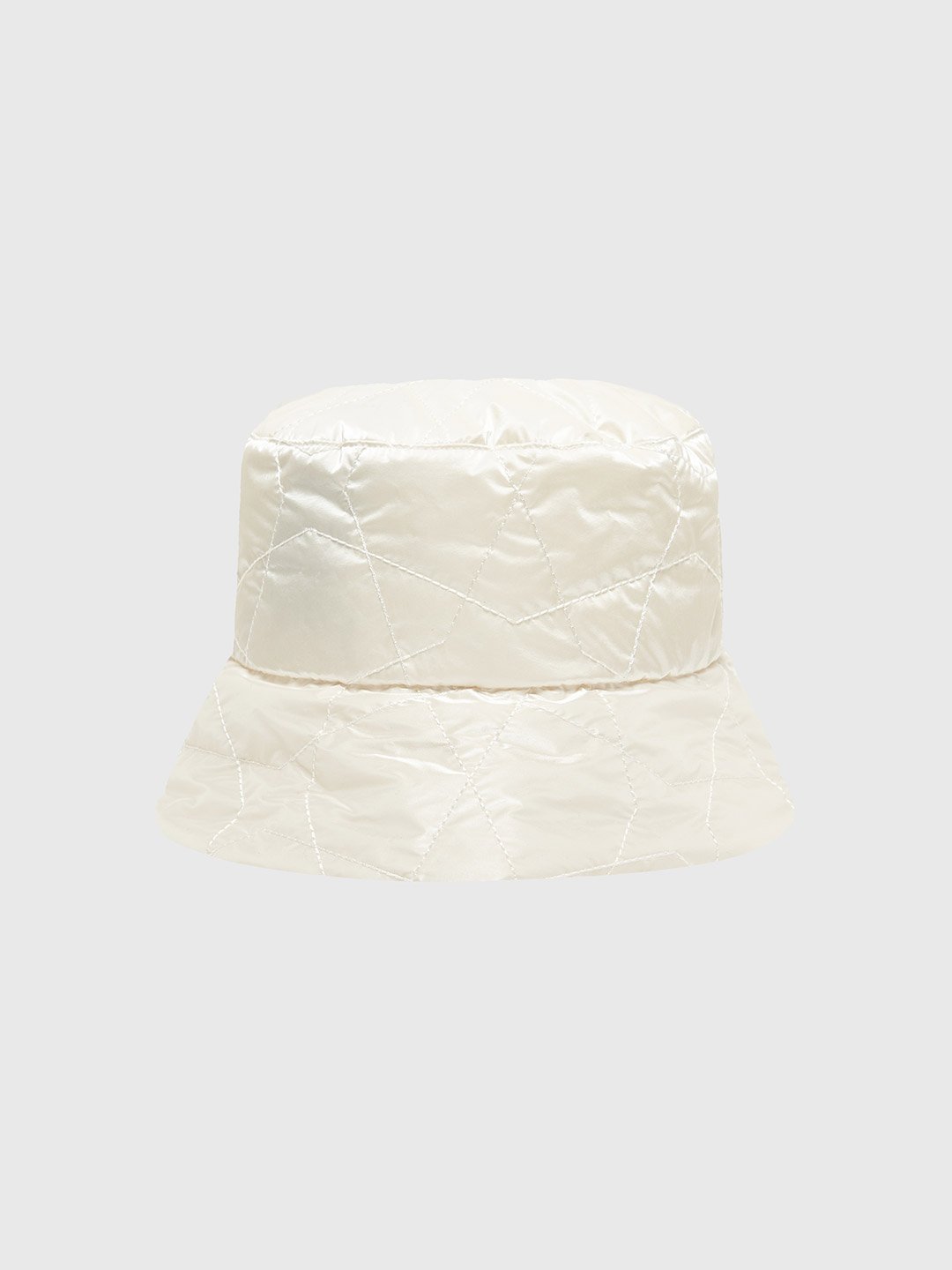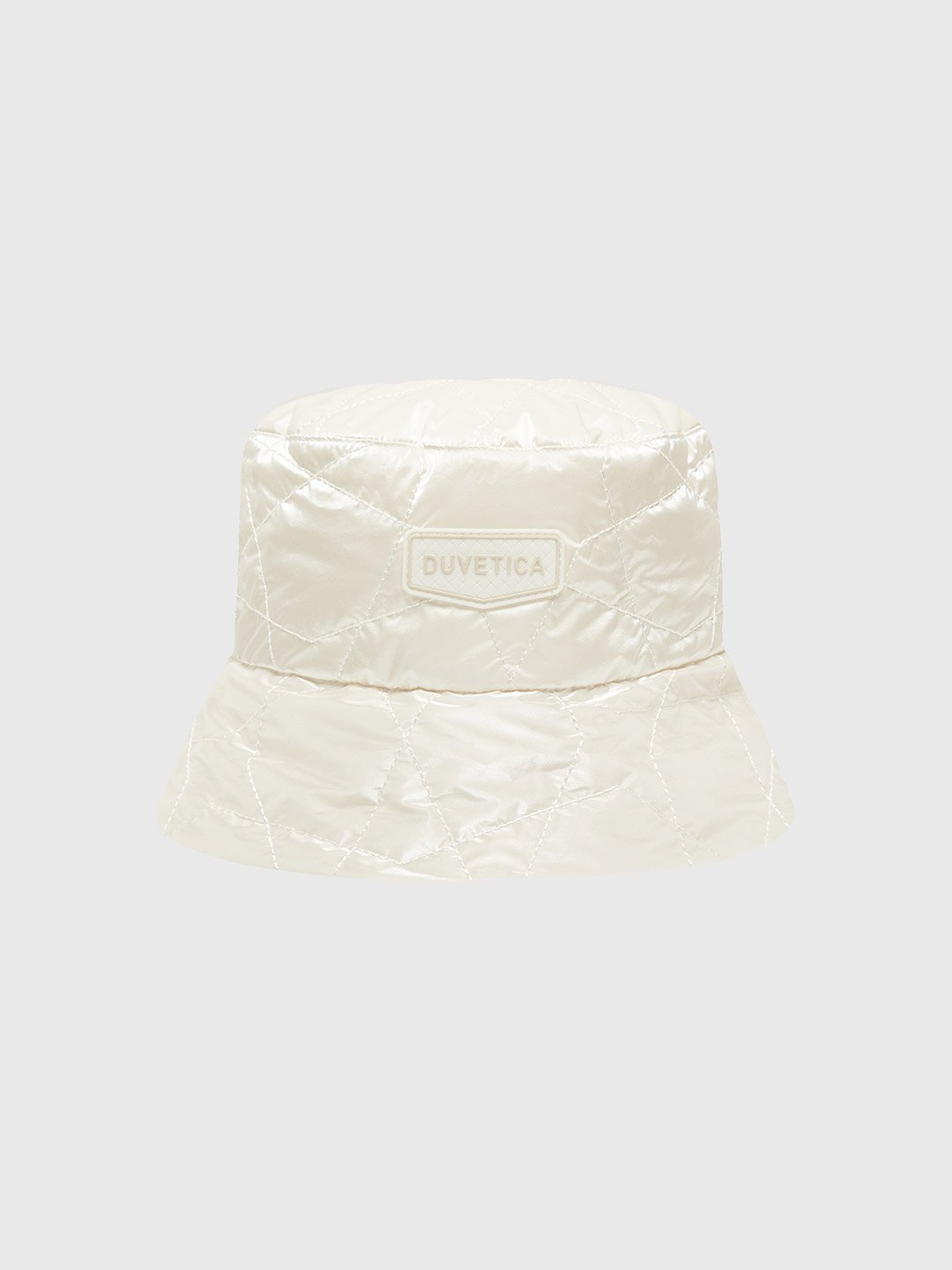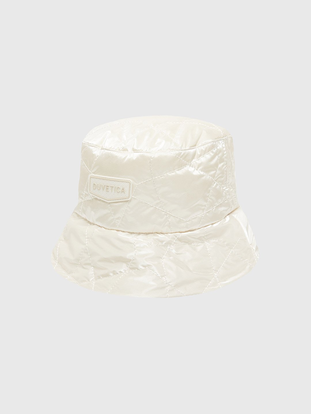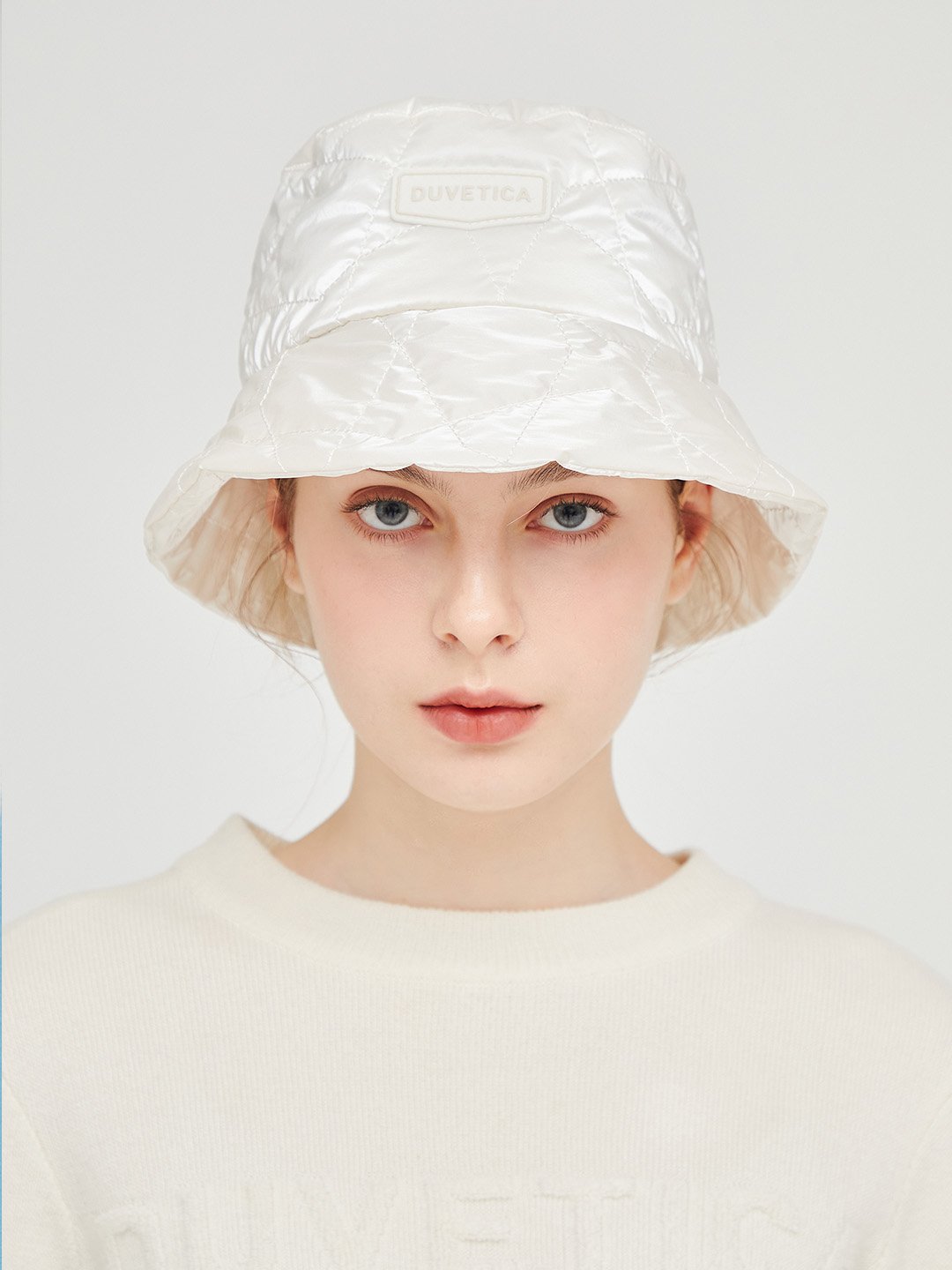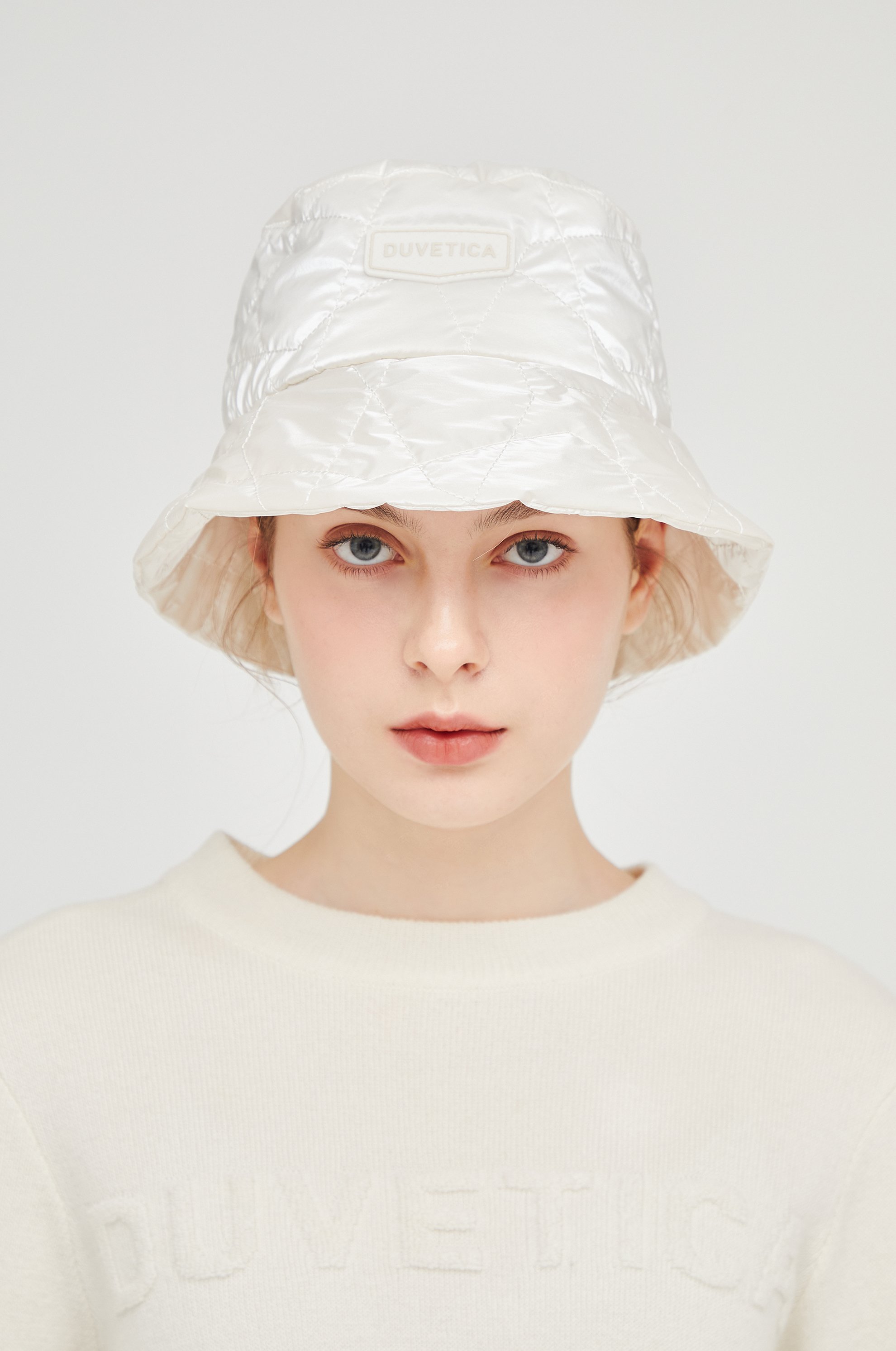 - 글로시한 질감의 패딩 소재가 사용된 시그니처 버킷 햇