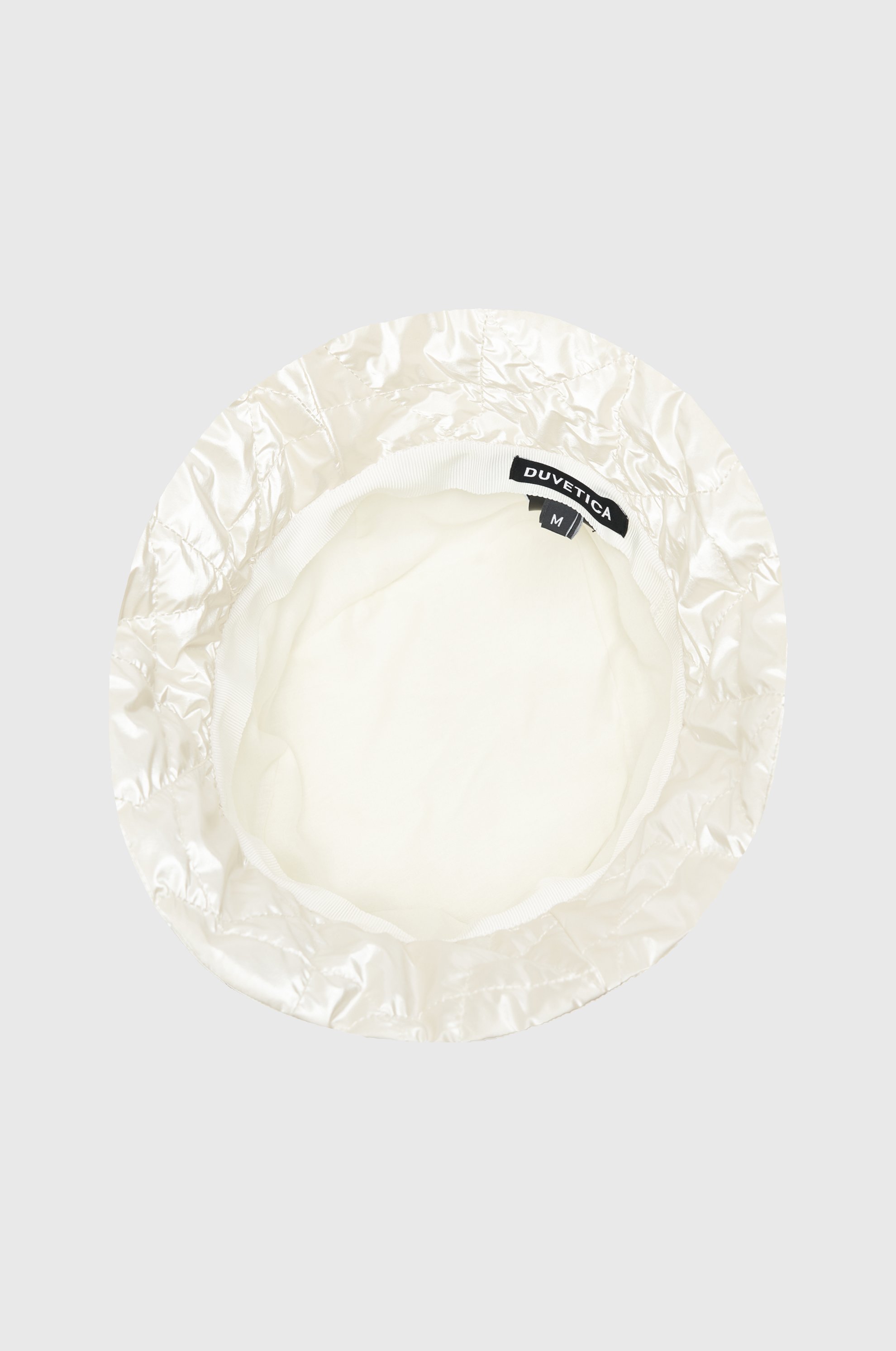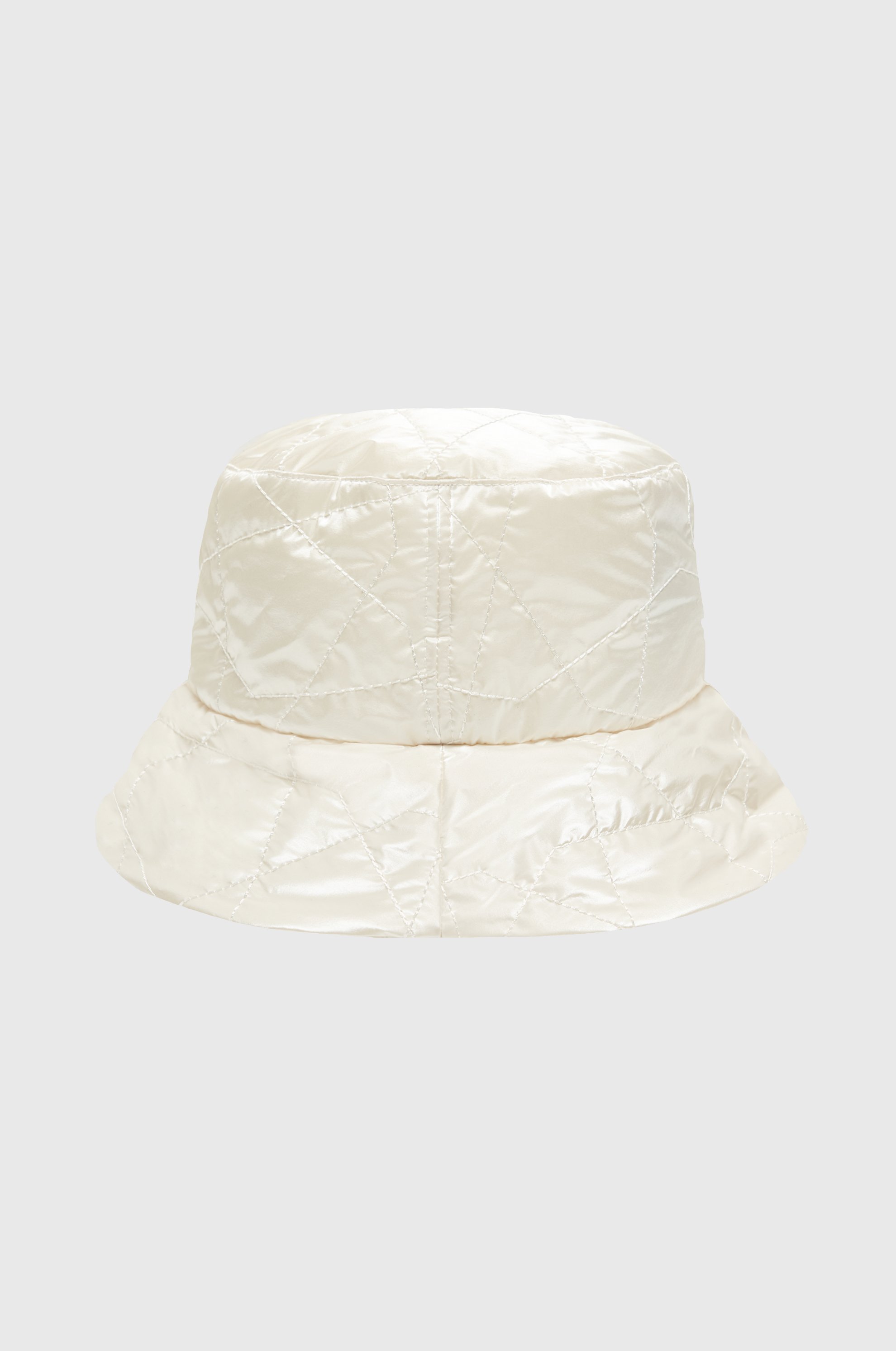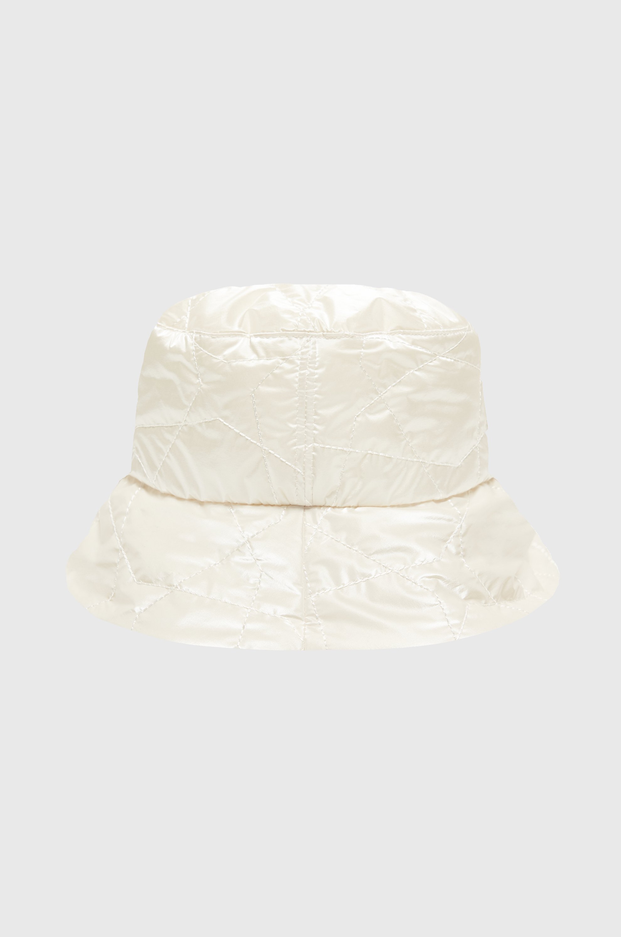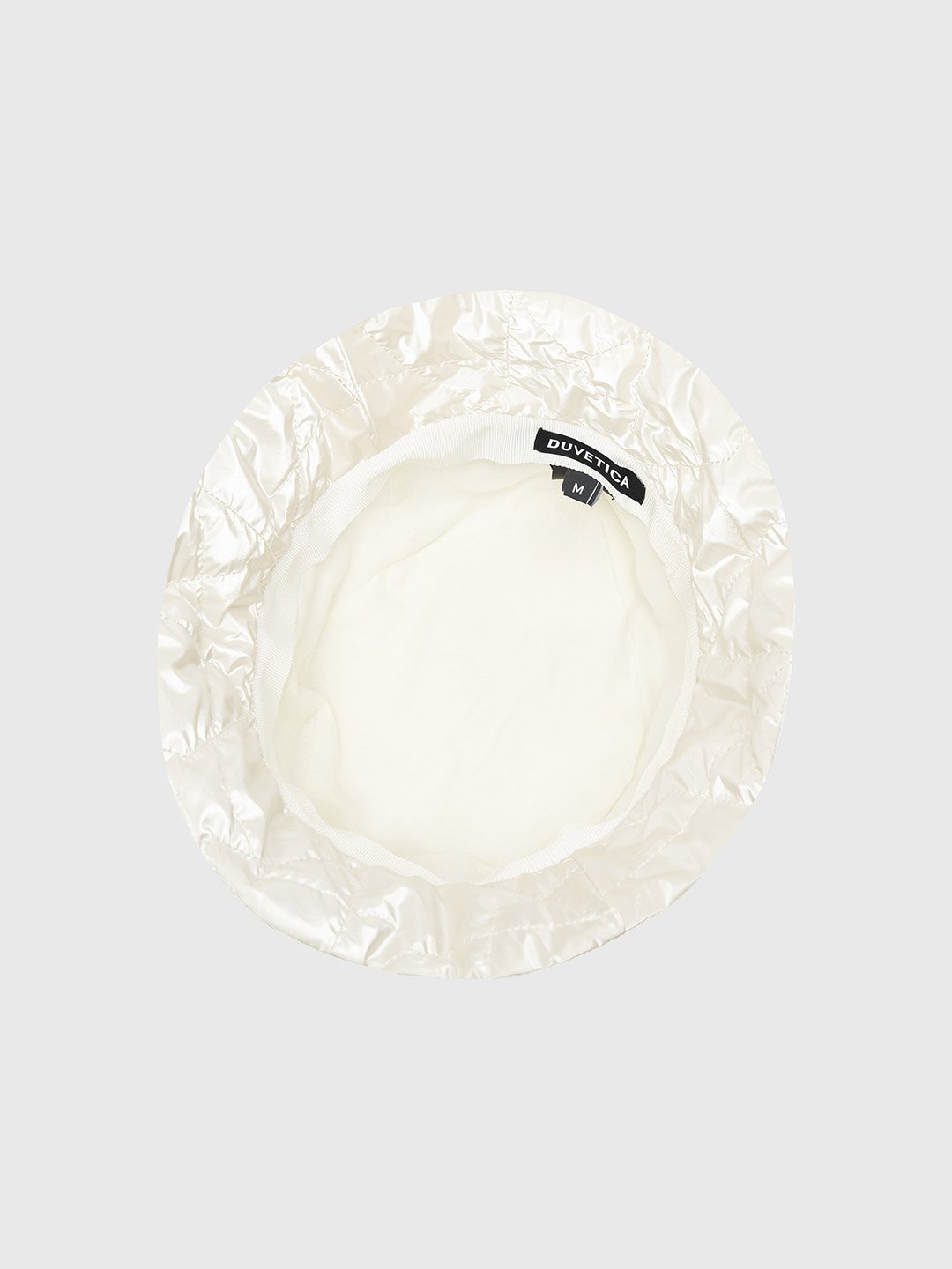 - 글로시한 질감의 패딩 소재가 사용된 시그니처 버킷 햇