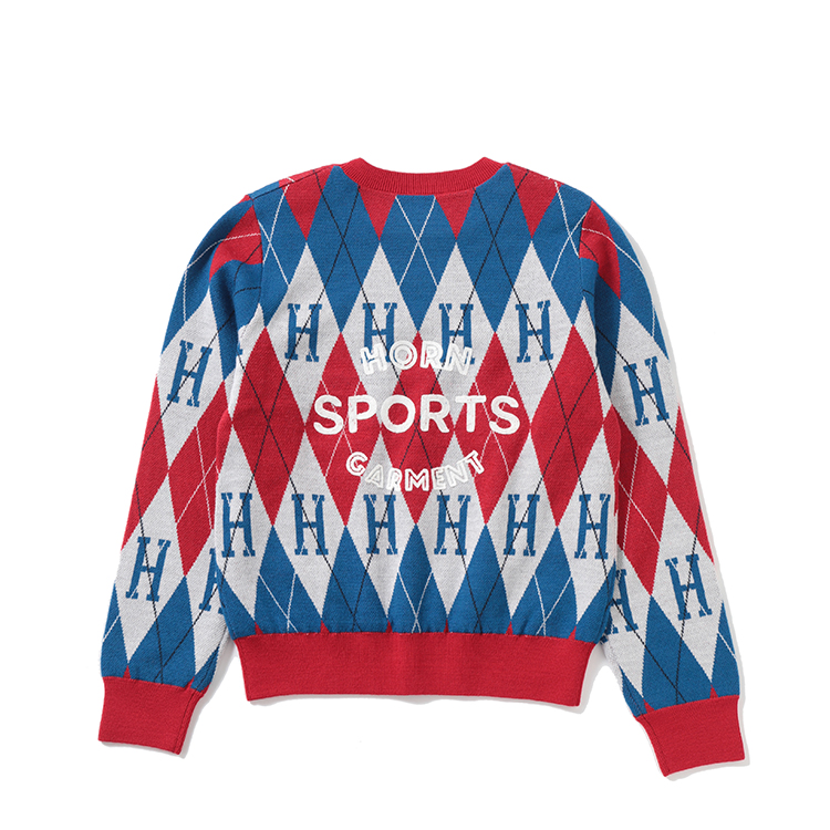 H아가일 패턴이 돋보이는 여성 자카드 방풍 크루넥
