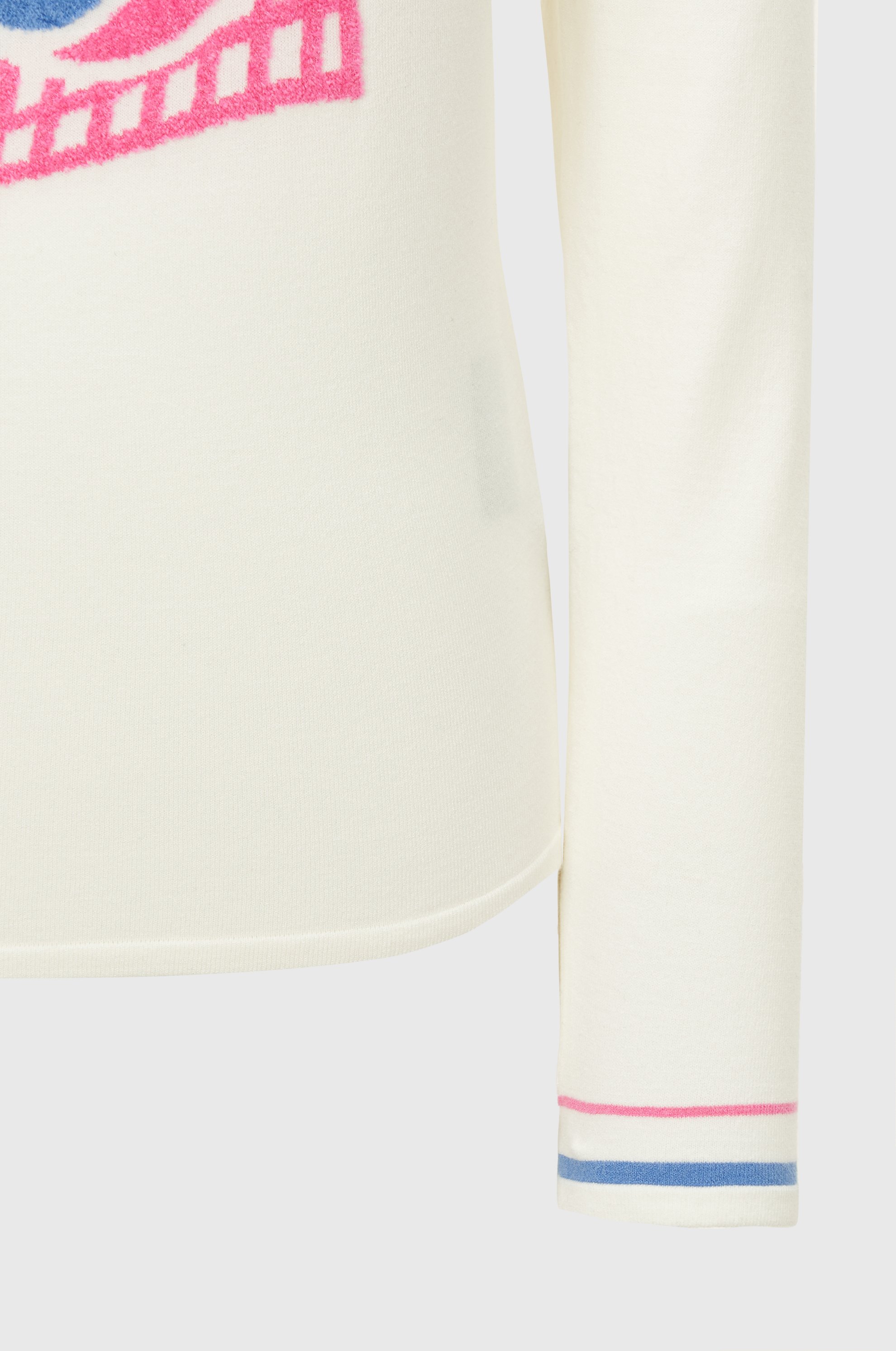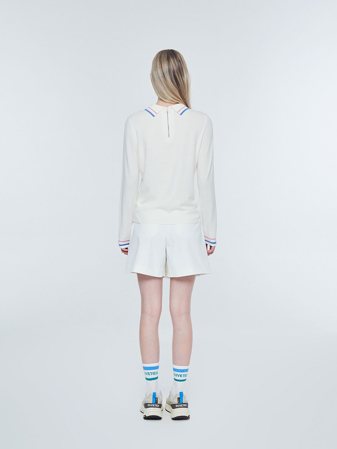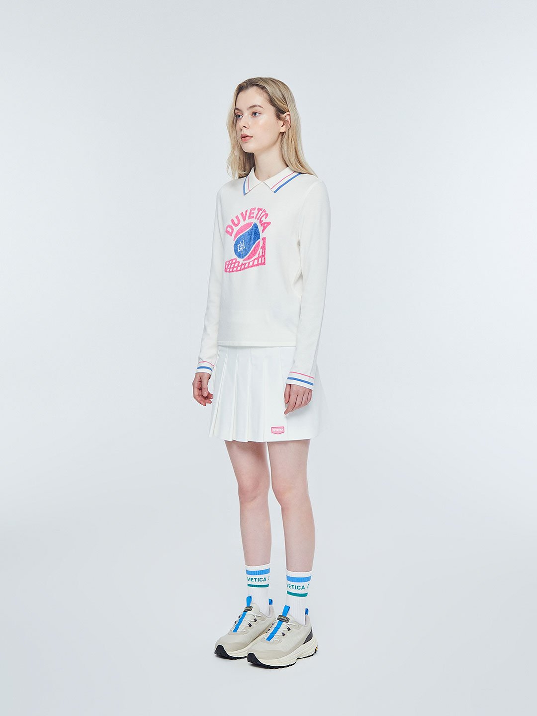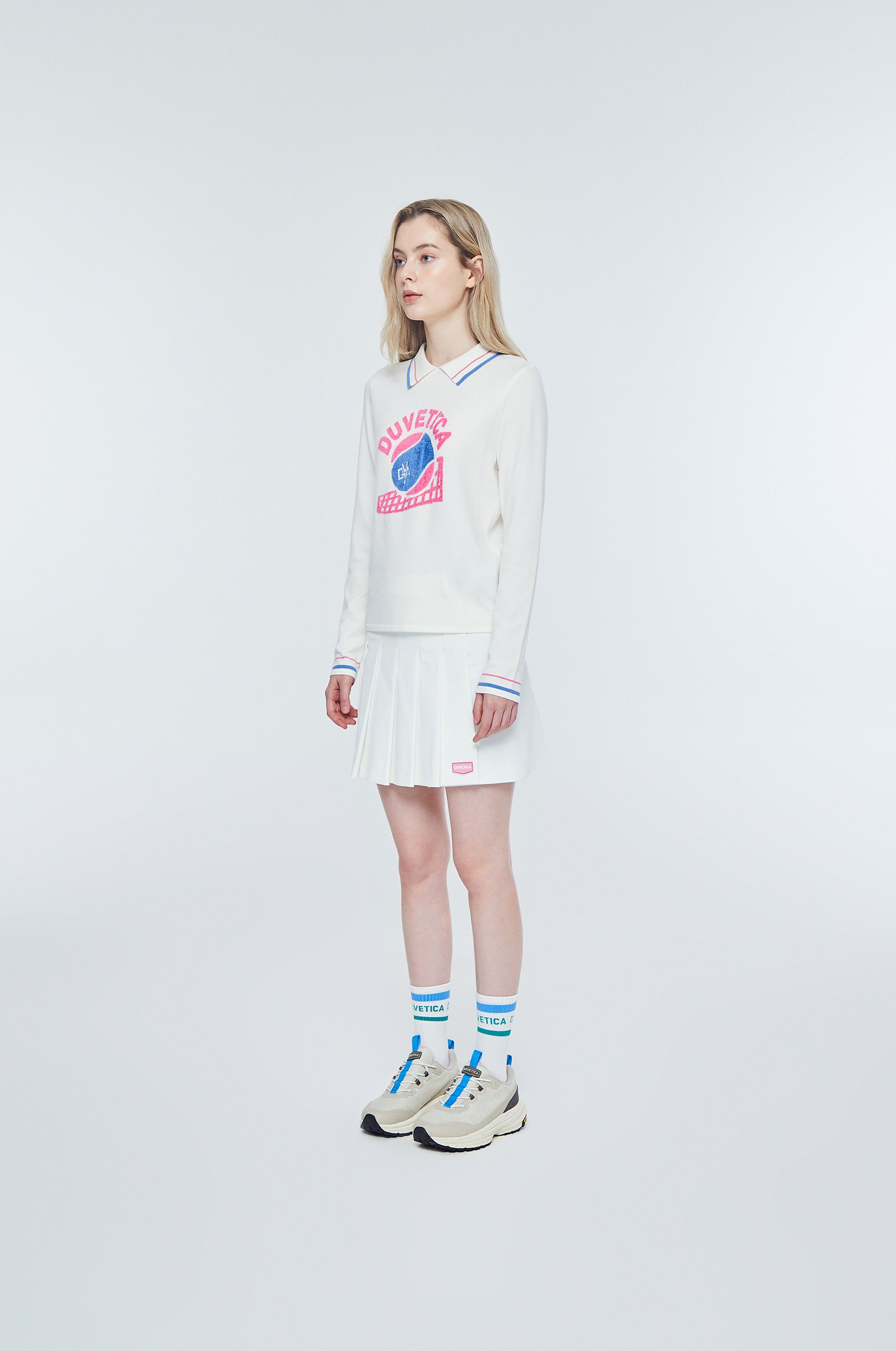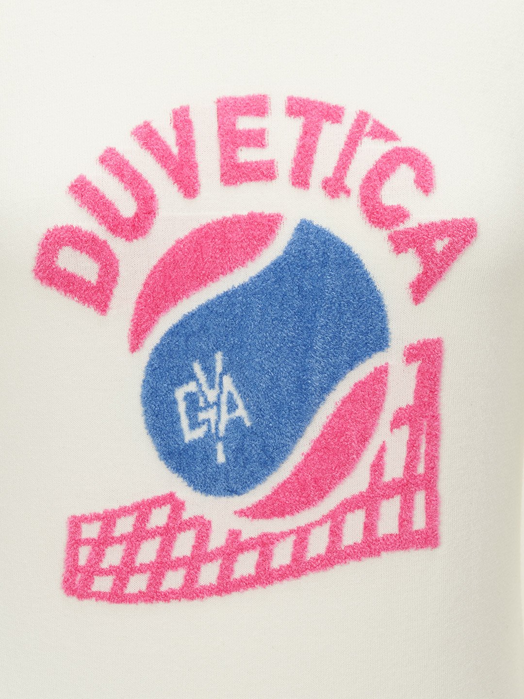 - 인타르시아 기법의 테니스 볼, 매트 그래픽, 레터링 로고가 적용된 카라 니트 풀오버