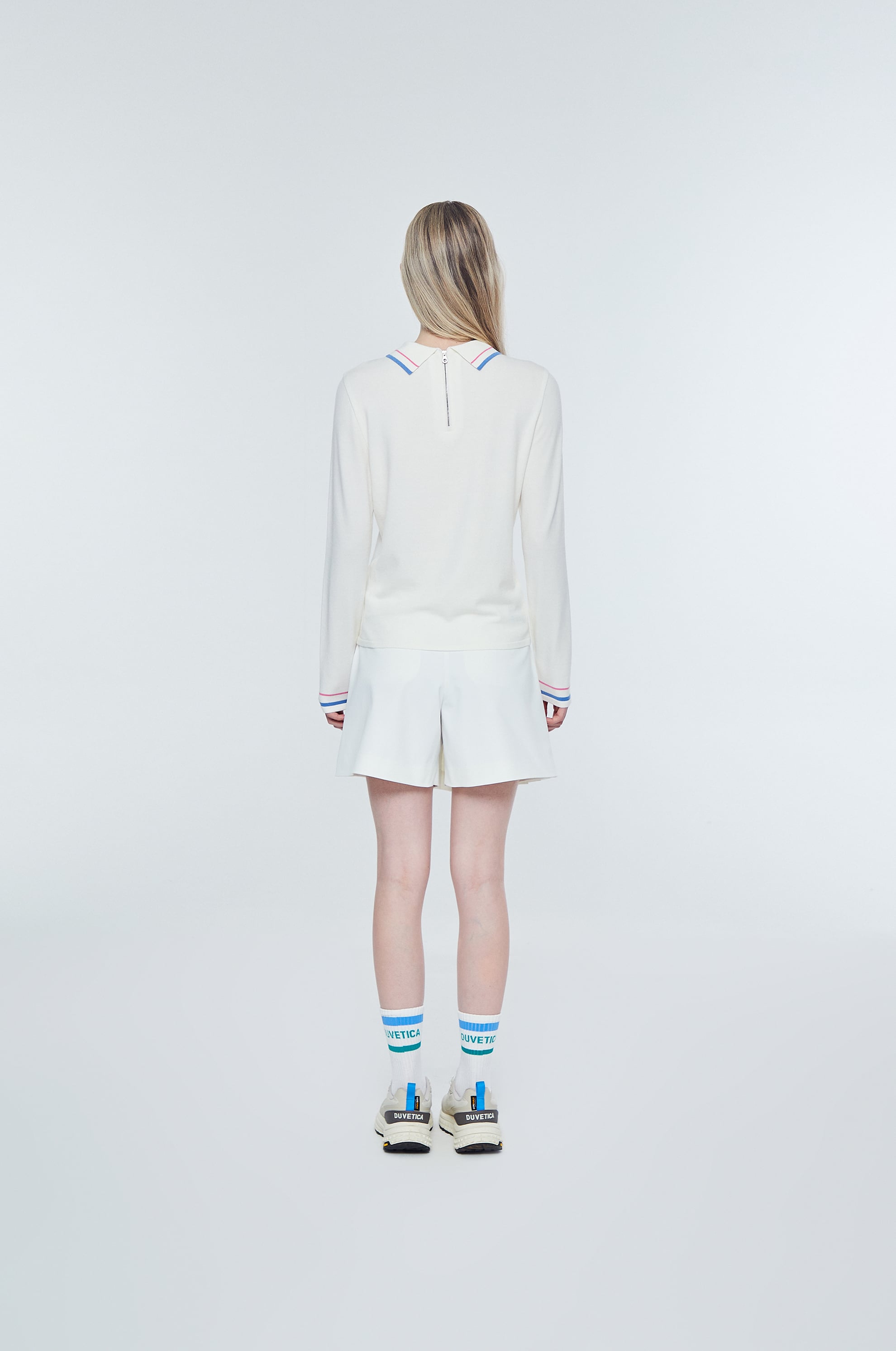- 레귤러 슬림 디자인을 적용한 핏으로, 착용시 페미닌한 실루엣 경험 가능