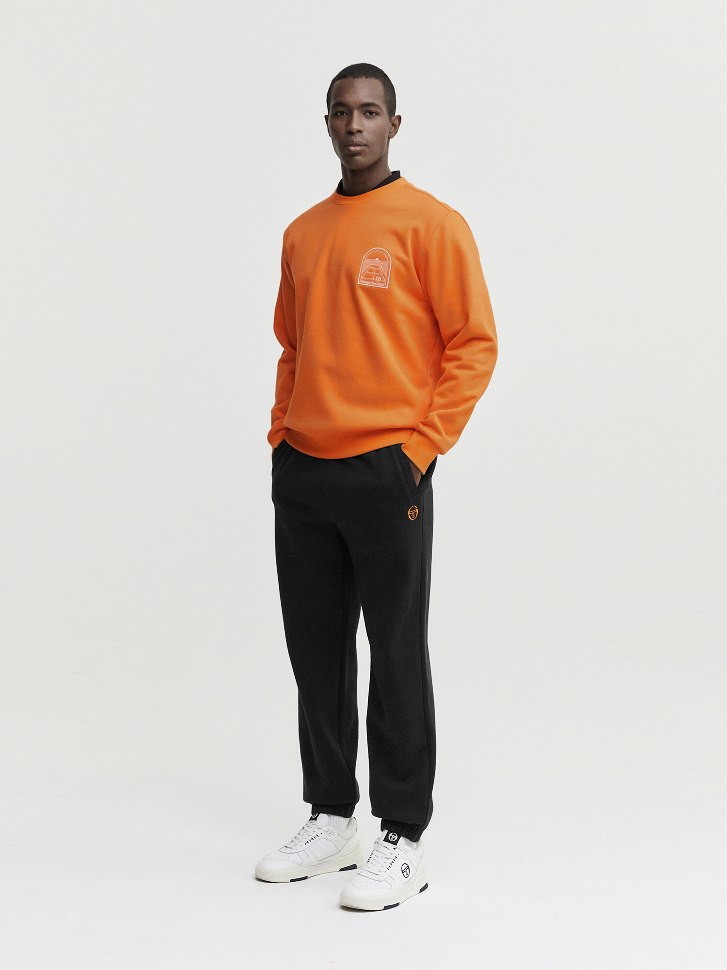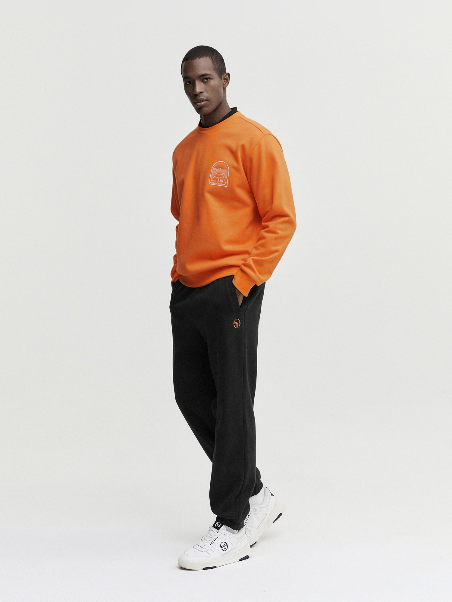- 맨투맨이나 후드와 매치하여 프리미엄한 스웻 셋업 연출 가능