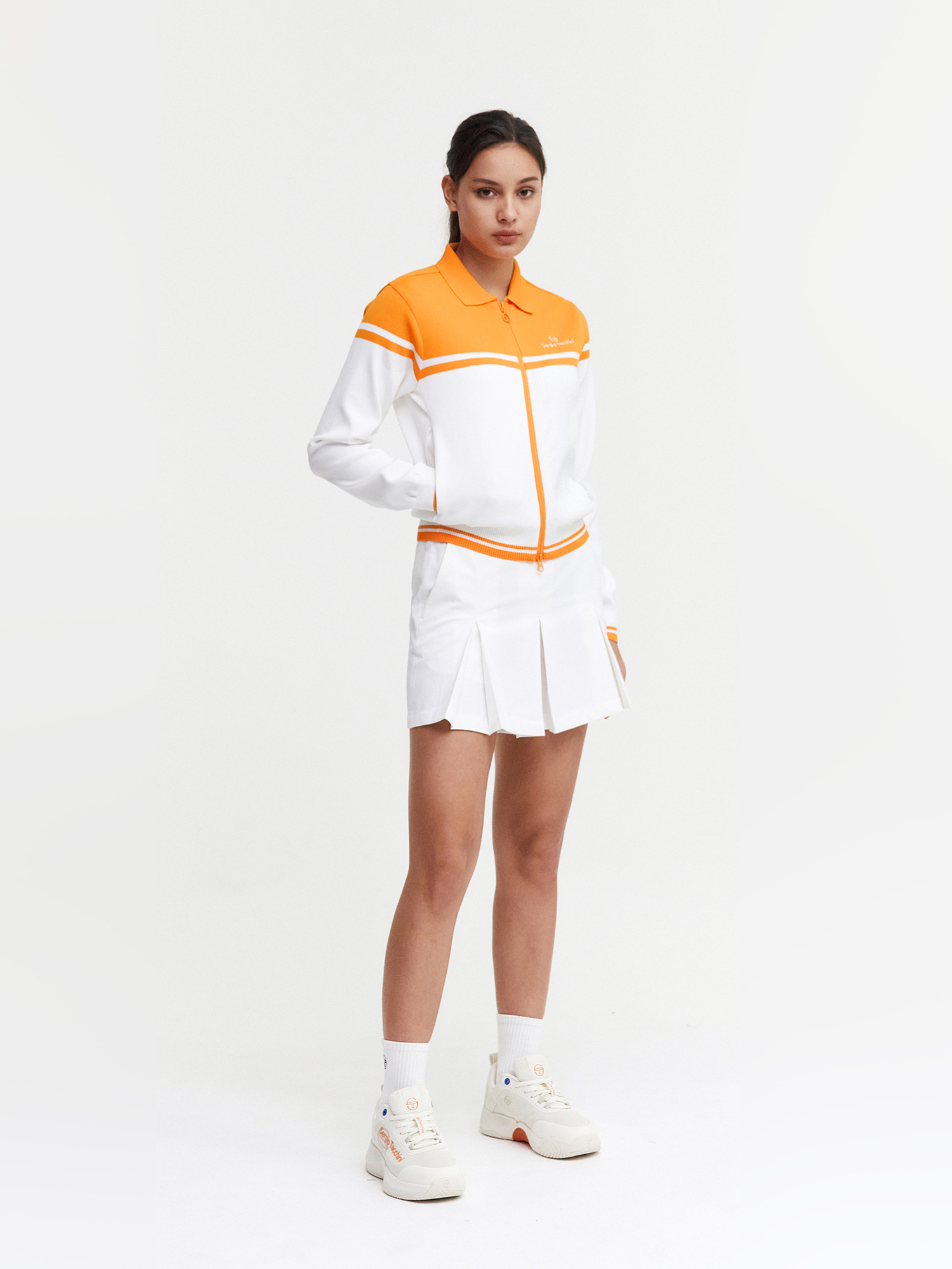 - 타키니의 헤리티지 중 하나인 "다마린도" 컬러 블럭 디자인으로 스커트와 매치하여 컬러풀하면서 프리미엄한 테니스 룩 연출 가능