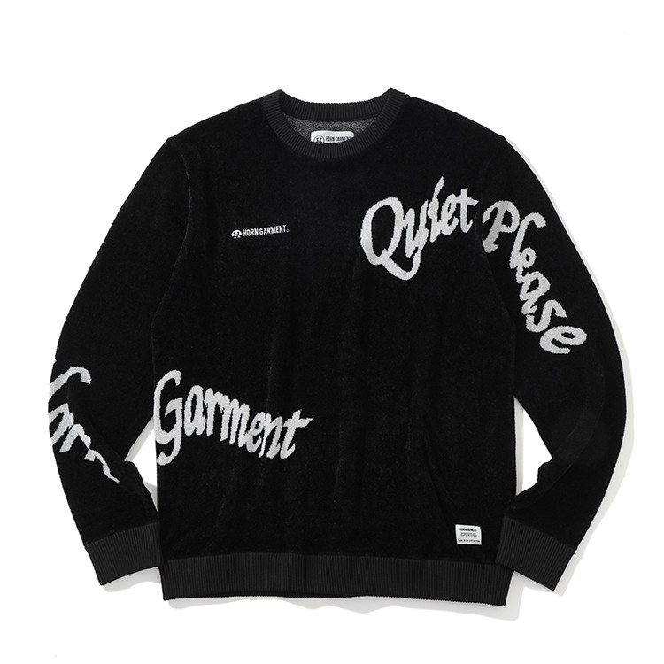 Quite Please와 Horn Garment 로고를 자카드로 표현하여 심플한 디자인에 포인트를 더함