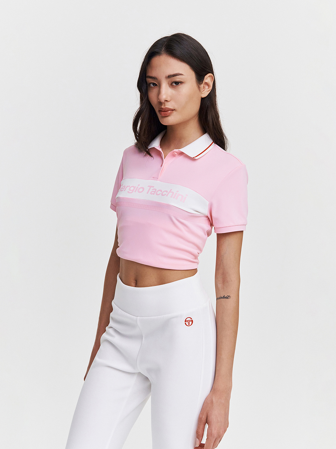 - - 다마린도 컬러 및 소재 블록킹과 로고 프린팅이 특징인 반팔 폴로