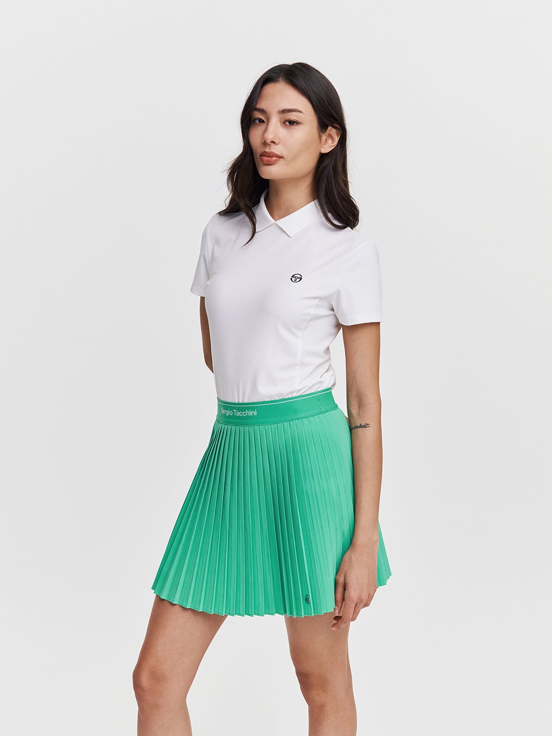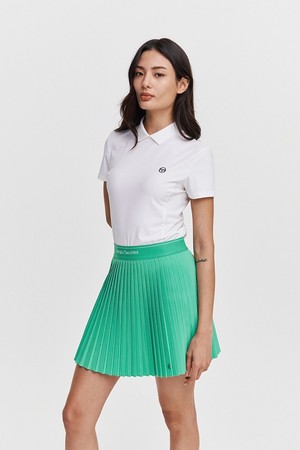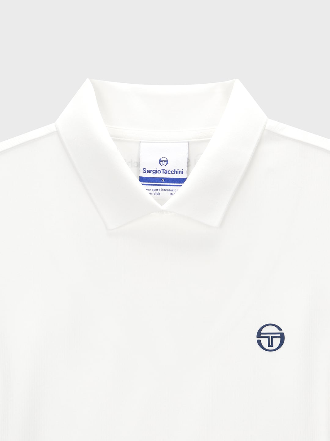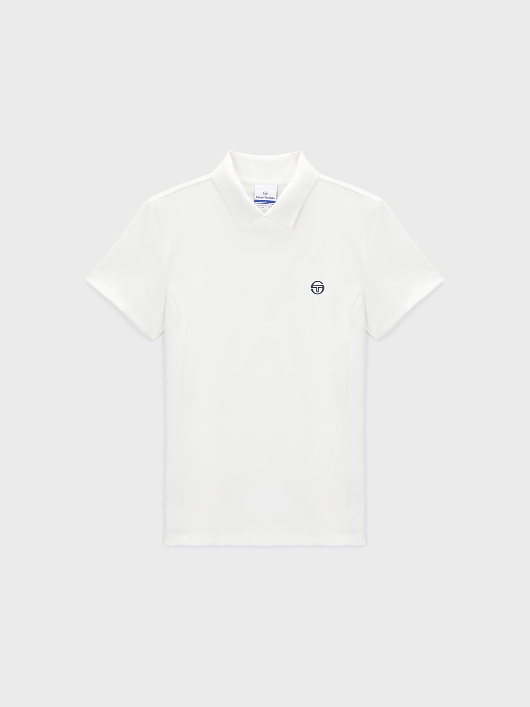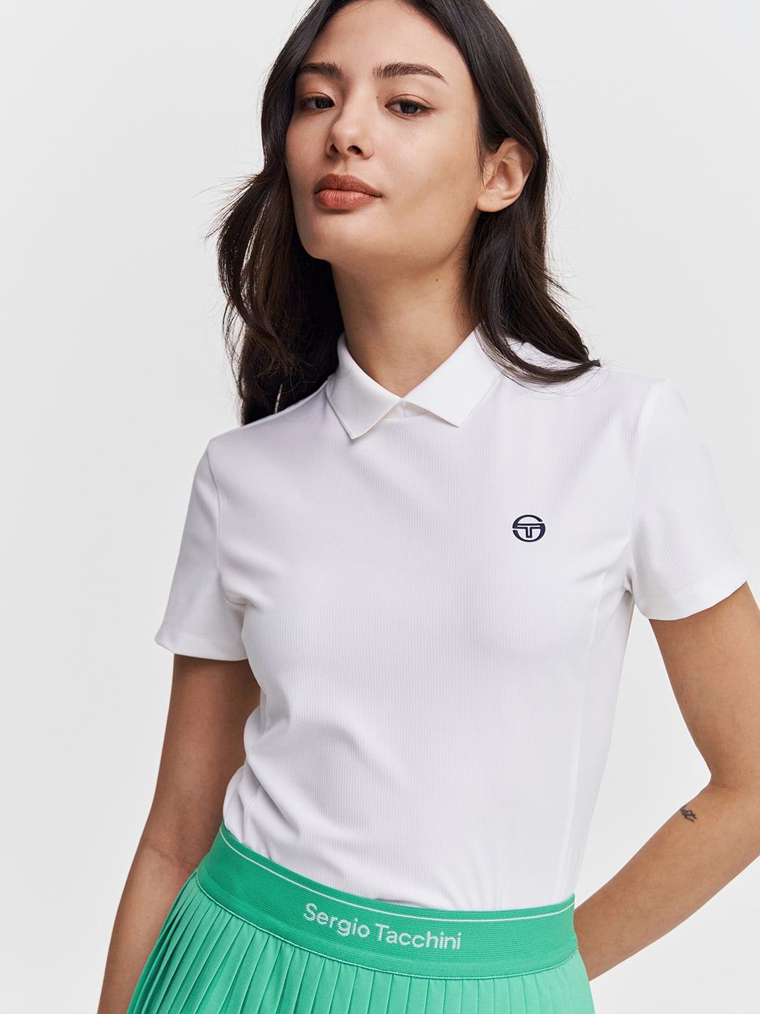 - -고트 카라 부착형 반팔 폴로 셔츠로 쾌적하게 착용 가능한 스타일