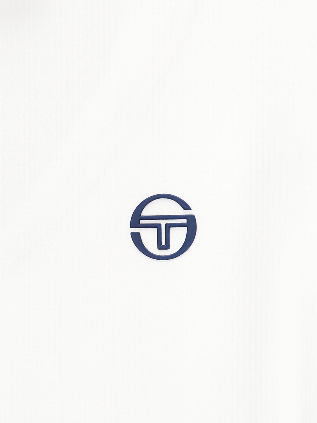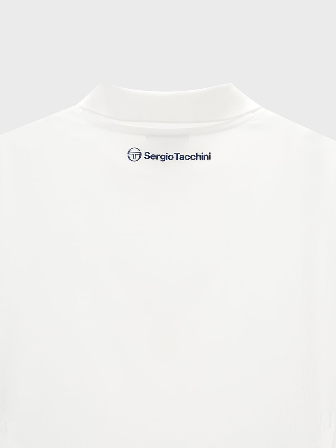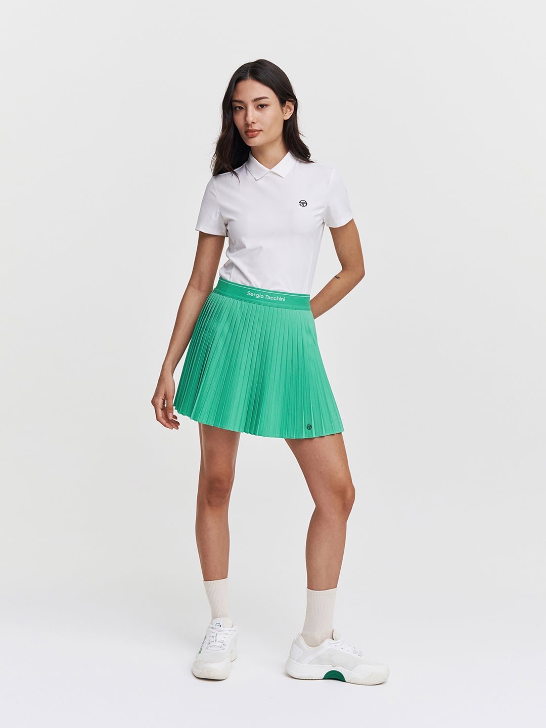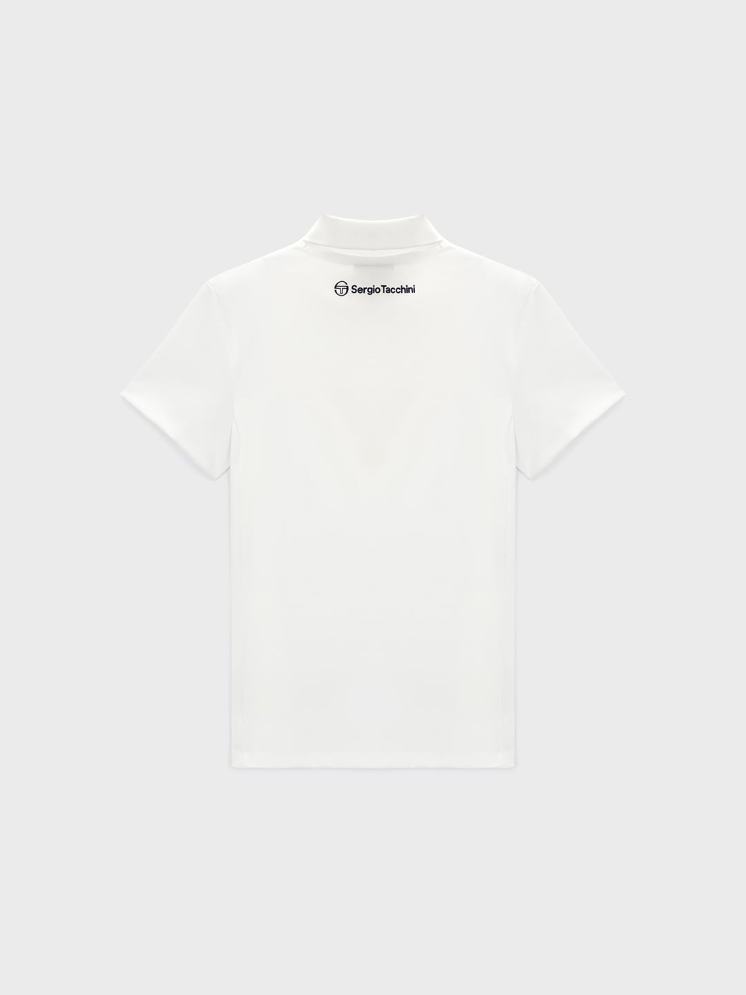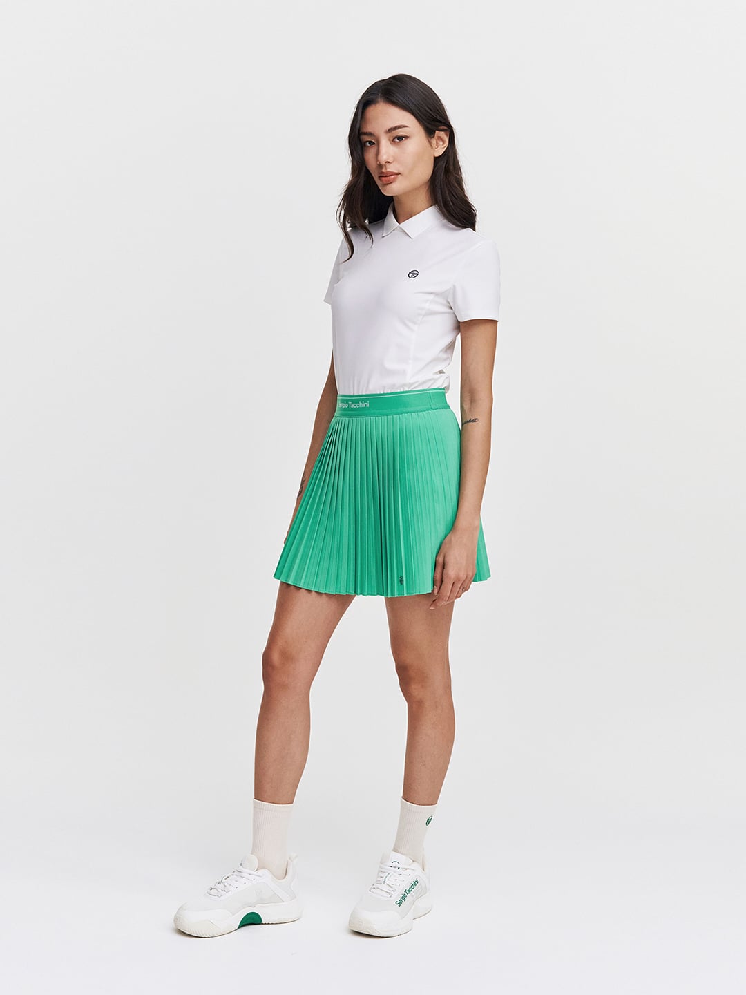 - -고트 카라 부착형 반팔 폴로 셔츠로 쾌적하게 착용 가능한 스타일