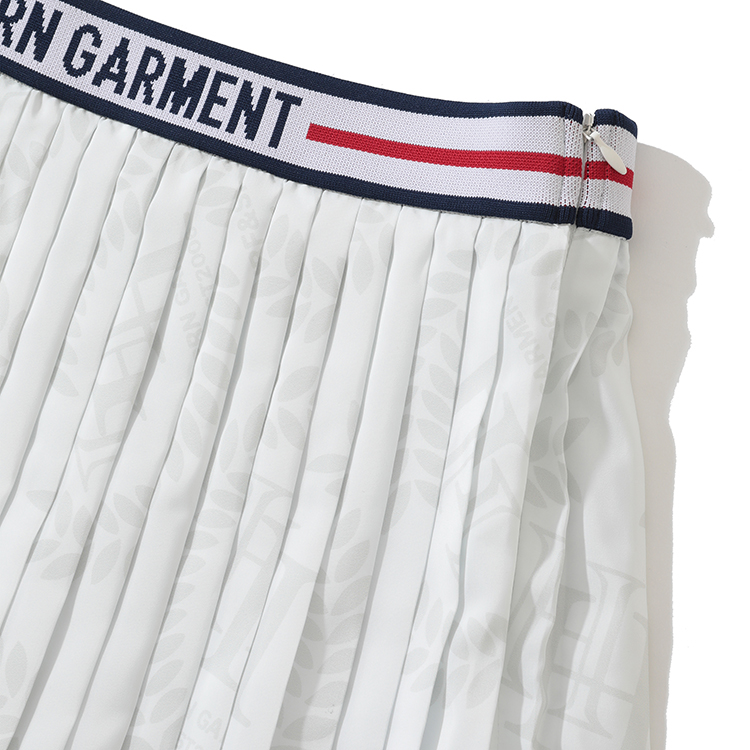 월계관 패턴을 전면에 입힌 플리츠 스커트.