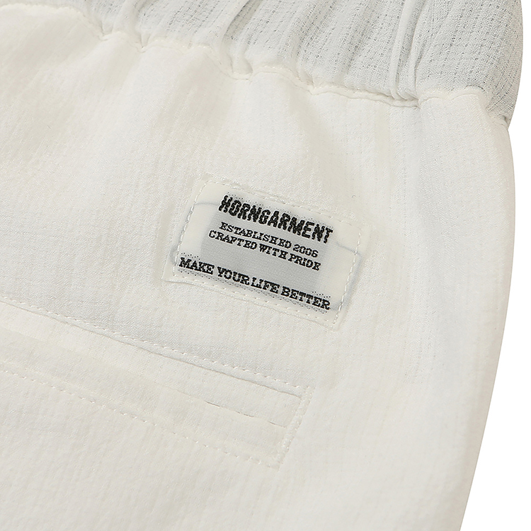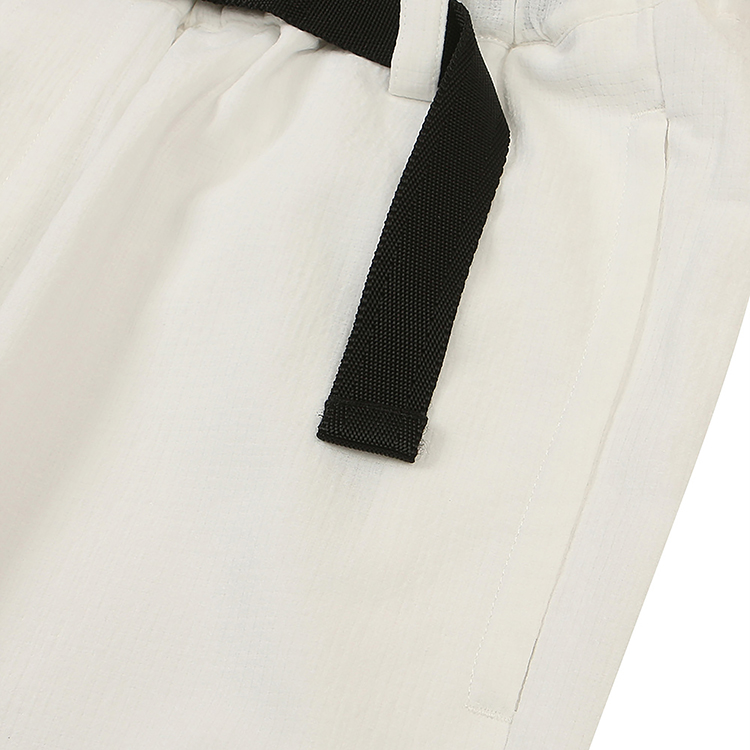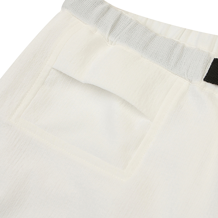 허리는 고무 사양에 사이드 릴리즈식 버클을 사용하여 폭넓은 허리 사이즈에 사용 가능. 프론트 우측 허리 부근에는 소품을 수납할 수 있는 동전 포켓을 장착하여 디자인성과 기능성을 겸비한 아이템으로 완성.