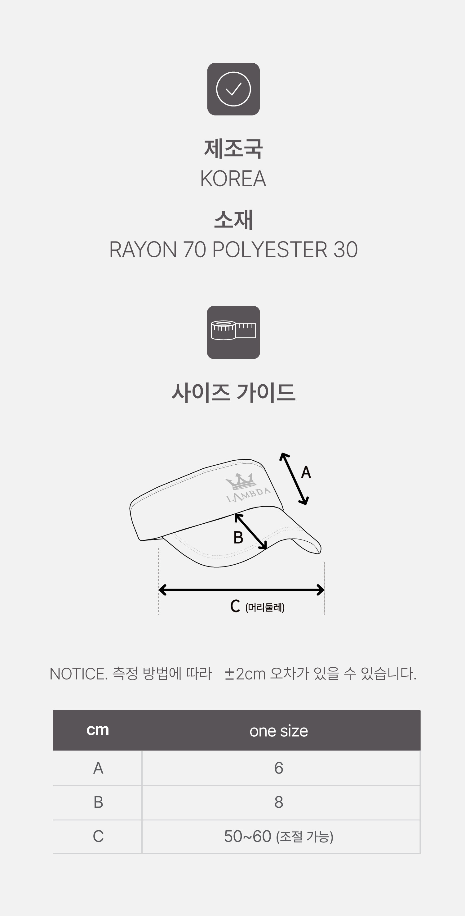 | 소재 | RAYON 70 | POLYESTER 30 |