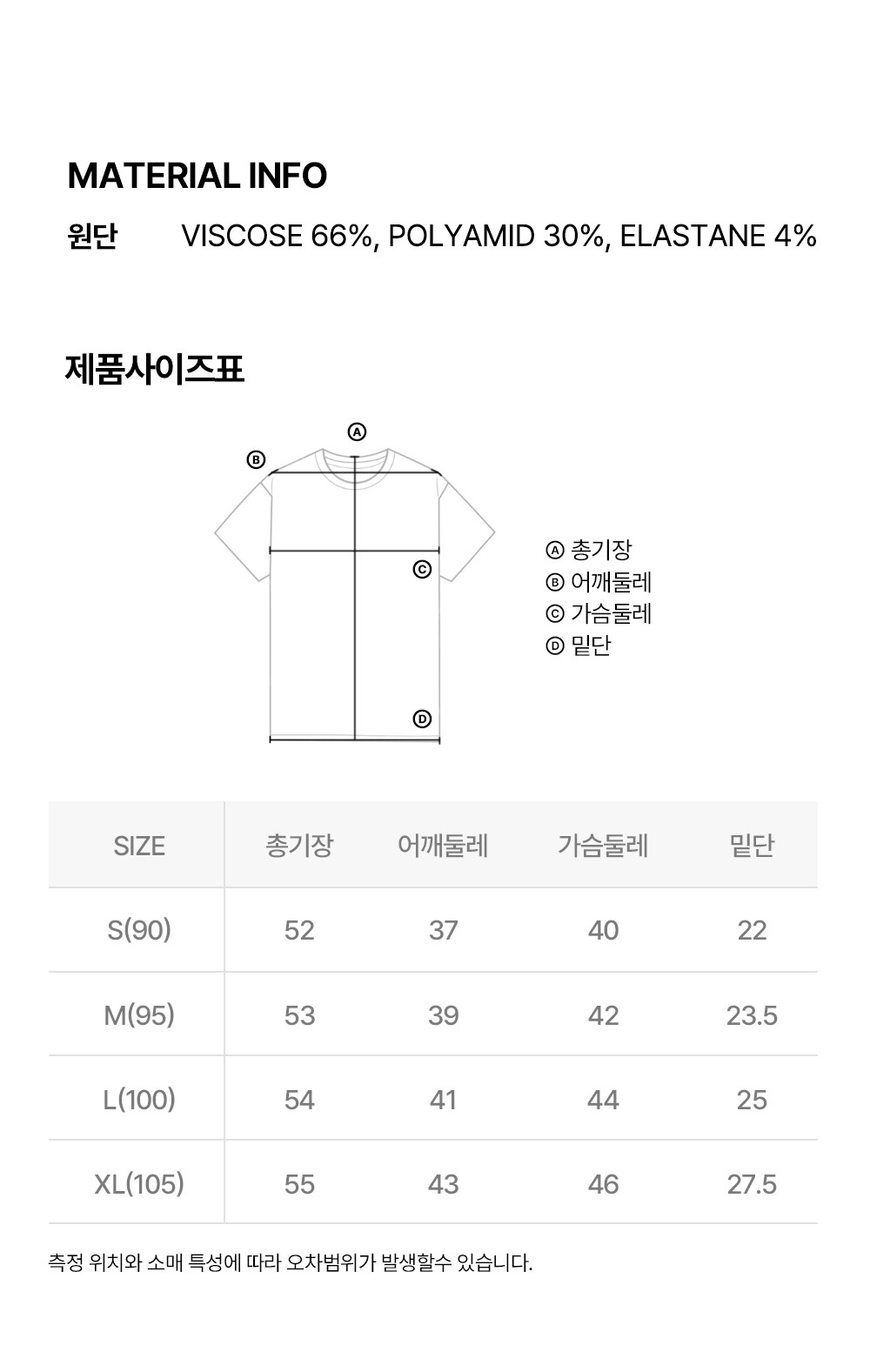 | 소재 | 원단 : 비스코스 66%, 폴리아미드 30%, 엘라스탄 4% |