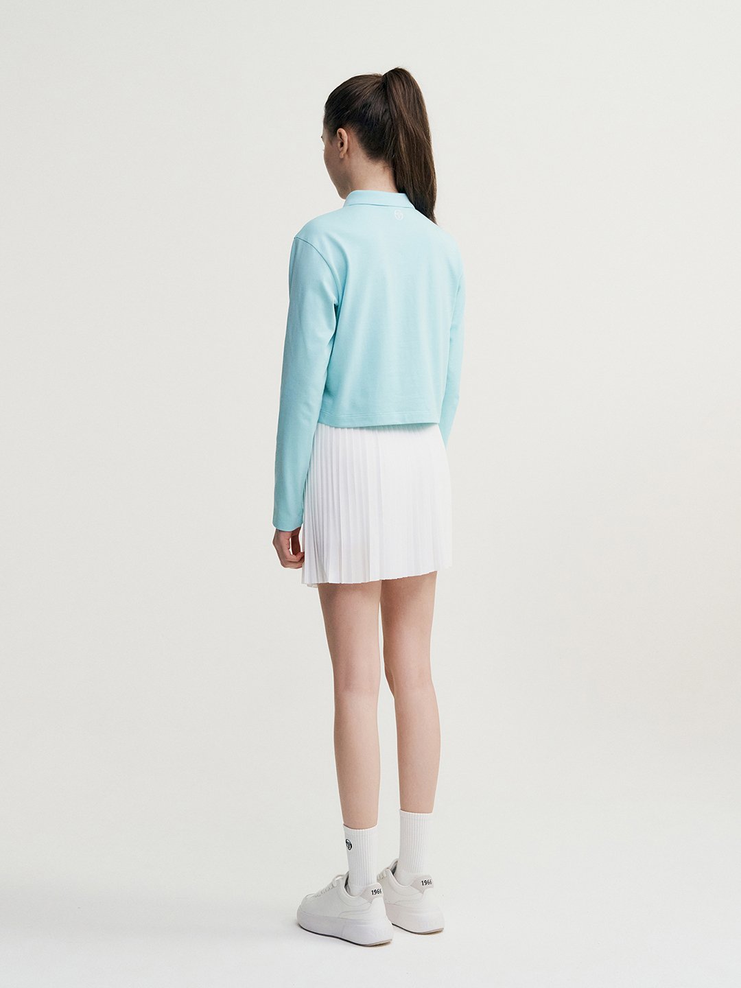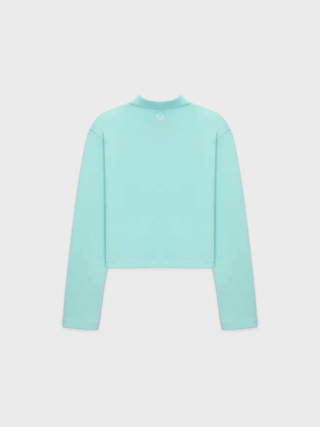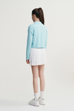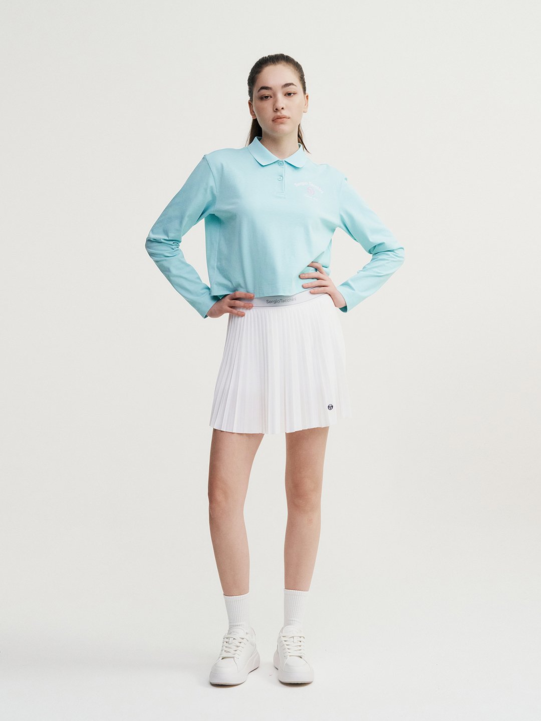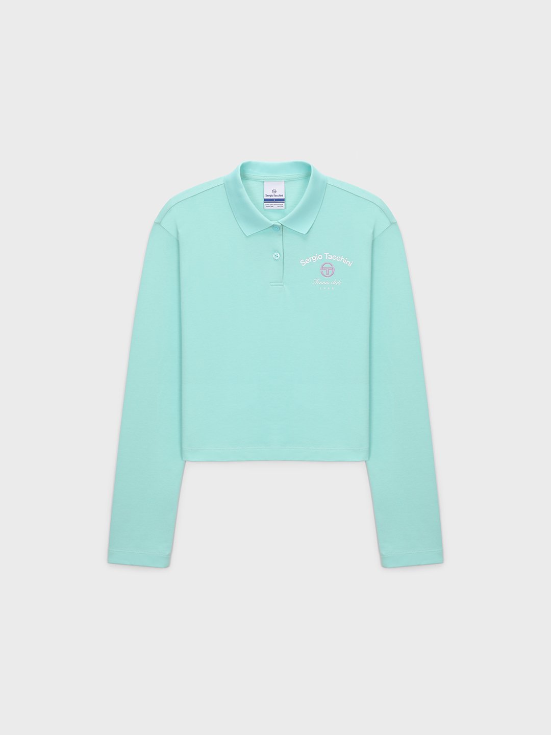 - -가슴의 자수와 프린트 아트웍이 포인트인 크롭기장의 라이프스타일형 긴팔 폴로탑