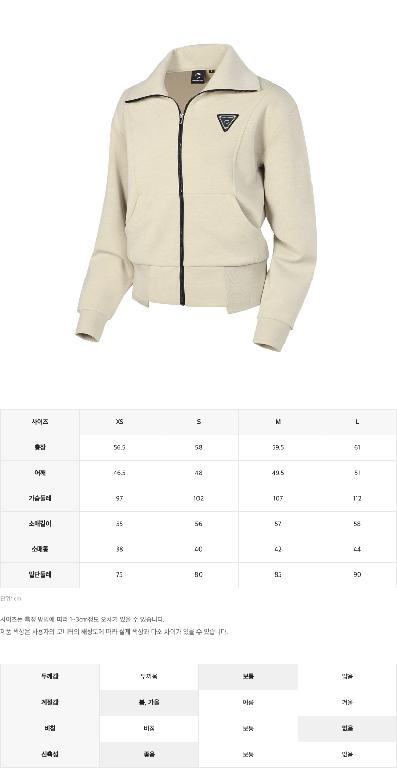 여성 소프트쿠션 캥거루포켓 풀집자켓 라이트베이지